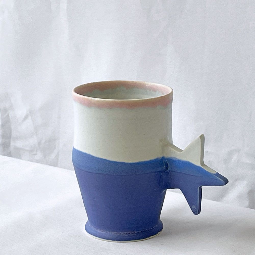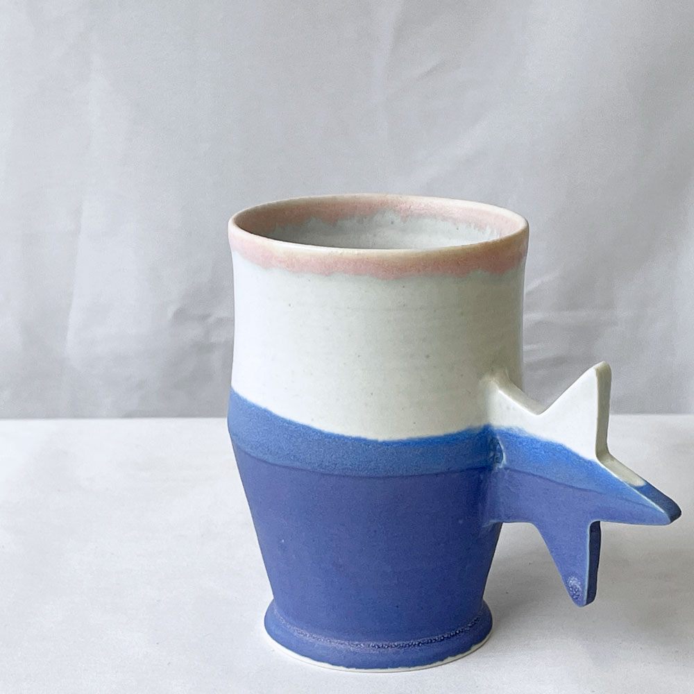 こちらは鮮やかな釉薬のグラデーションと星の取手が目を惹くマグカップ。