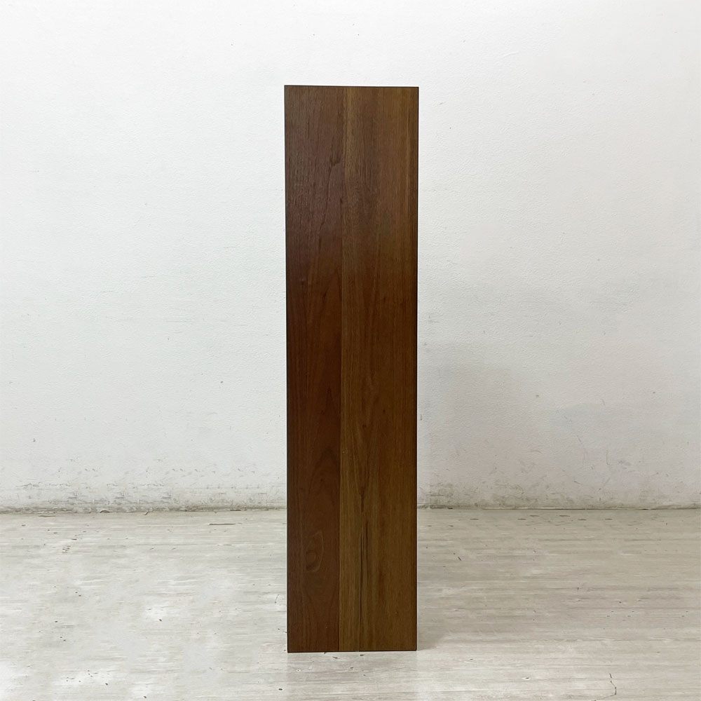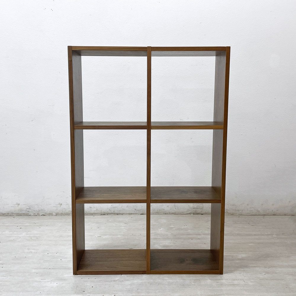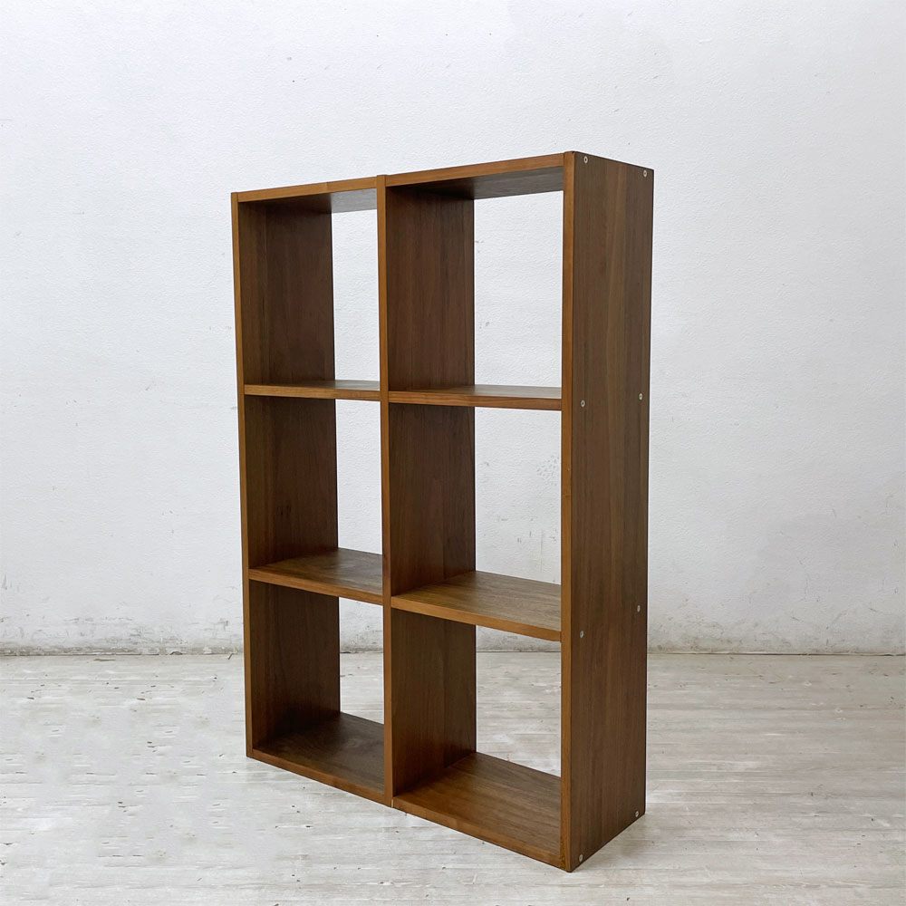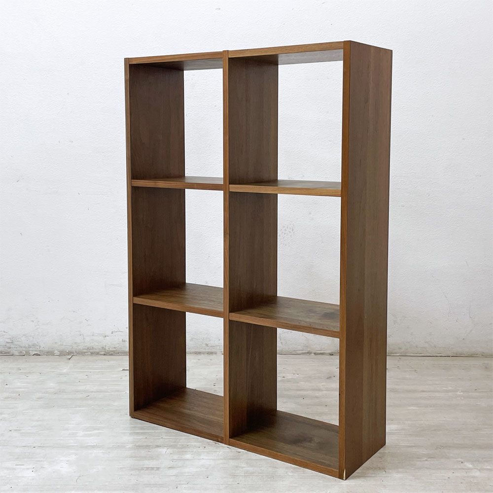 今回はウォールナット材・2列3段のタイプの入荷。木材が持つナチュラルな色味とシンプルなデザインにより、どんな空間にも難なく馴染む無印の定番収納です。