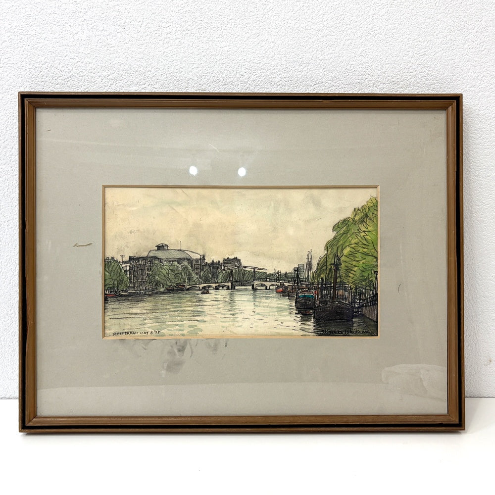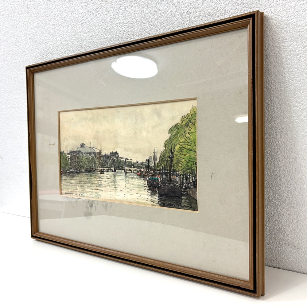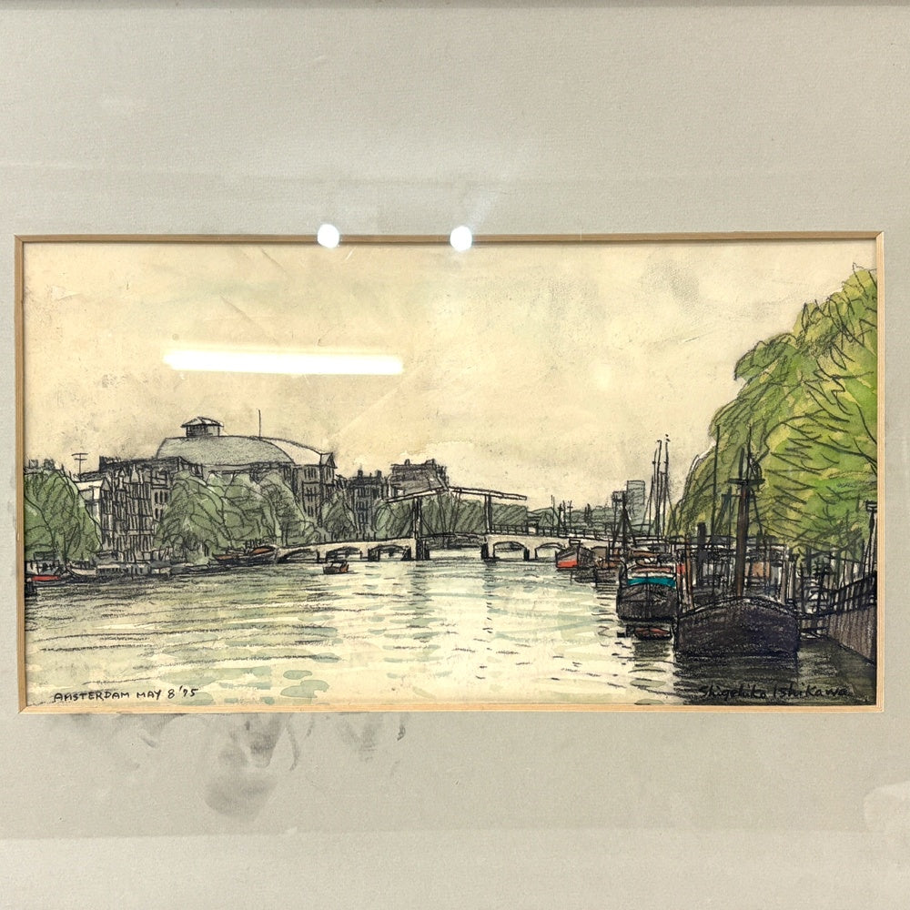 石川滋彦 絵画 水彩画 アムステルダム 風景画 サイン有 額装品 ●