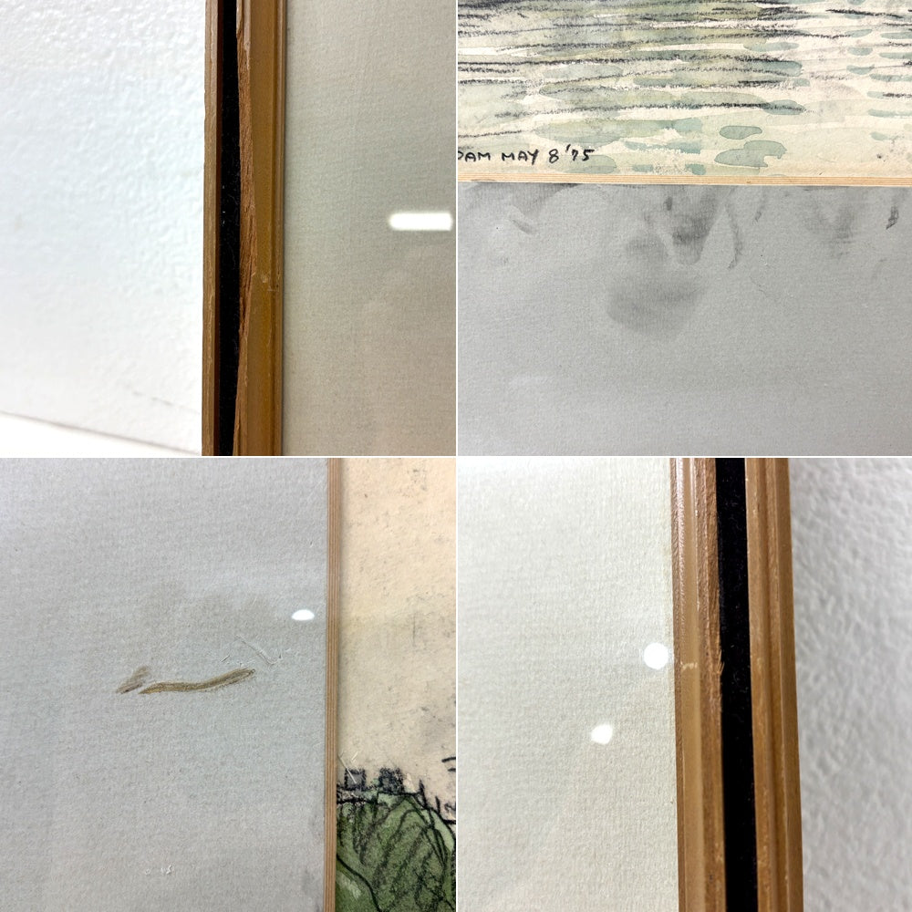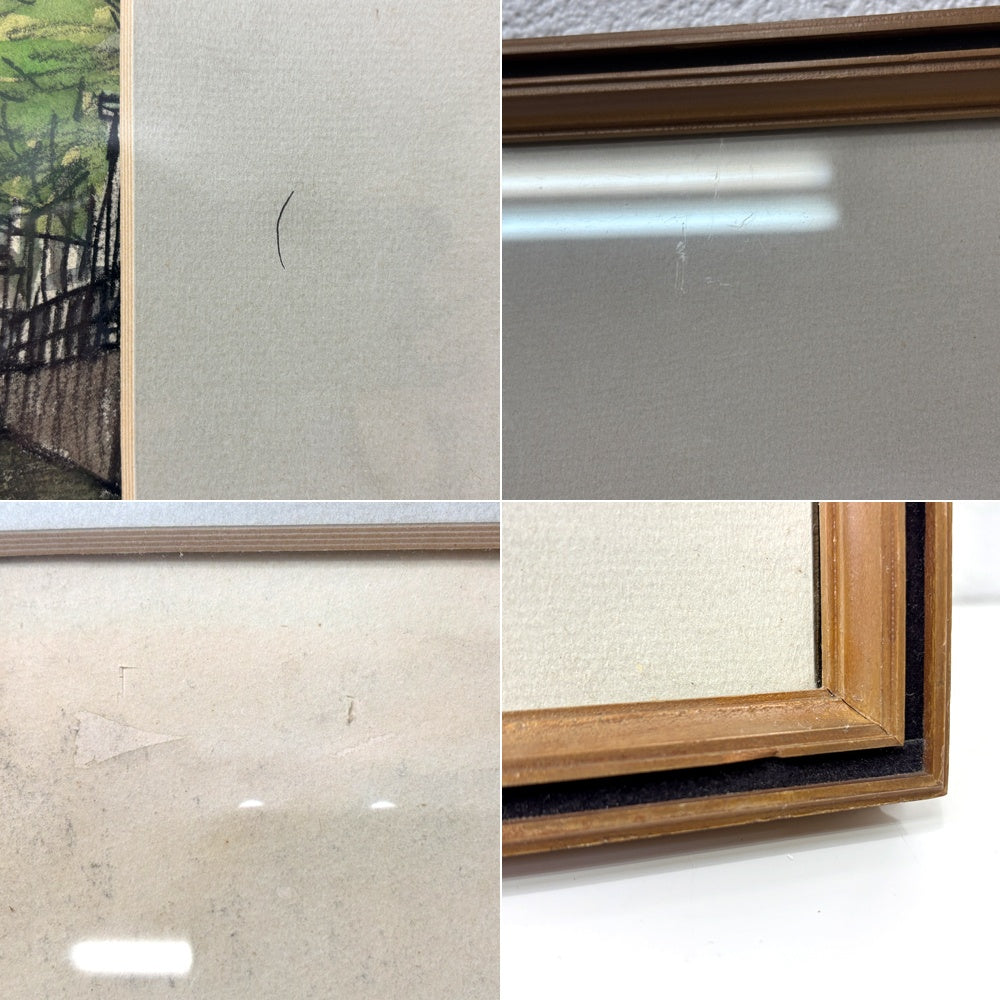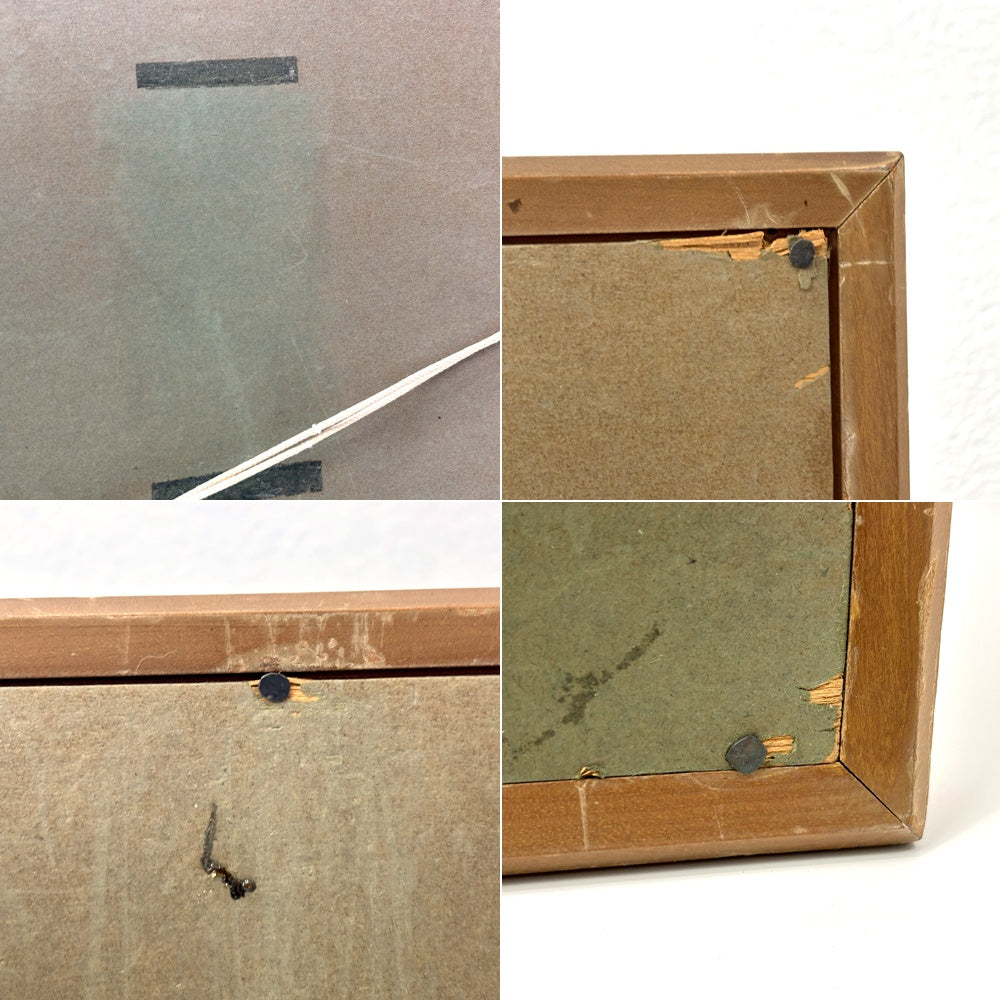 フレームに擦れや汚れ、大きな欠け等の使用感がございます。作品本体は左上に小さな打痕等が見られますが、鑑賞の際には大きく気になるダメージではございません。(9枚目画像左下参照)