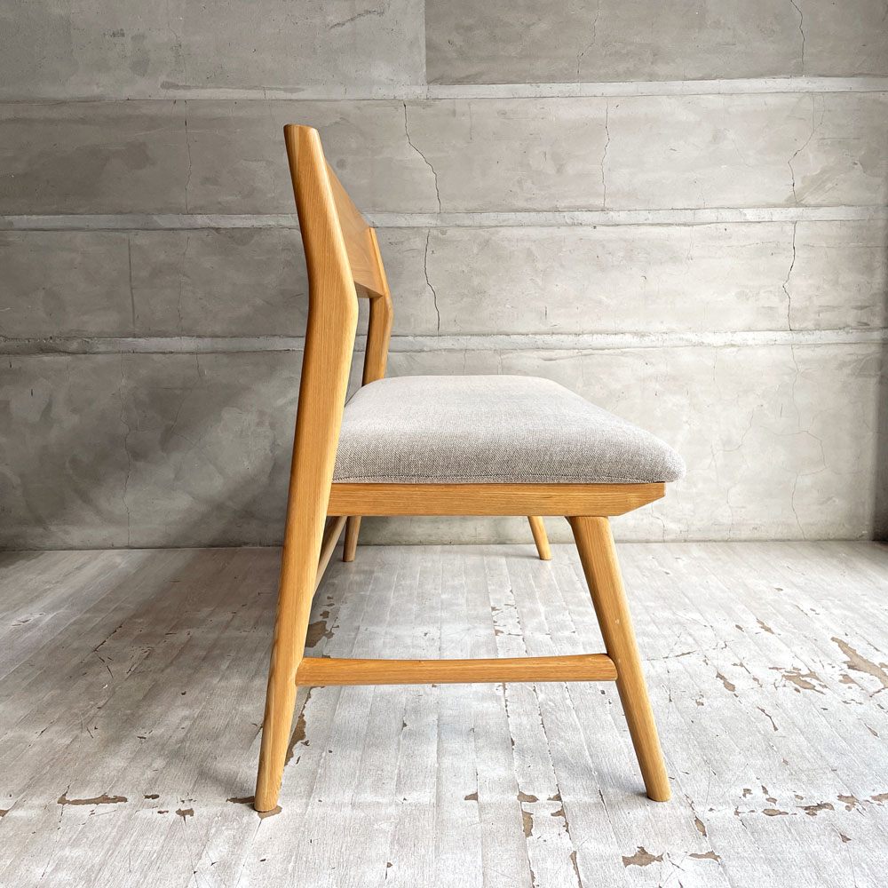 グレーファブリックのシートとアッシュ材フレームの組み合わせは相性抜群。