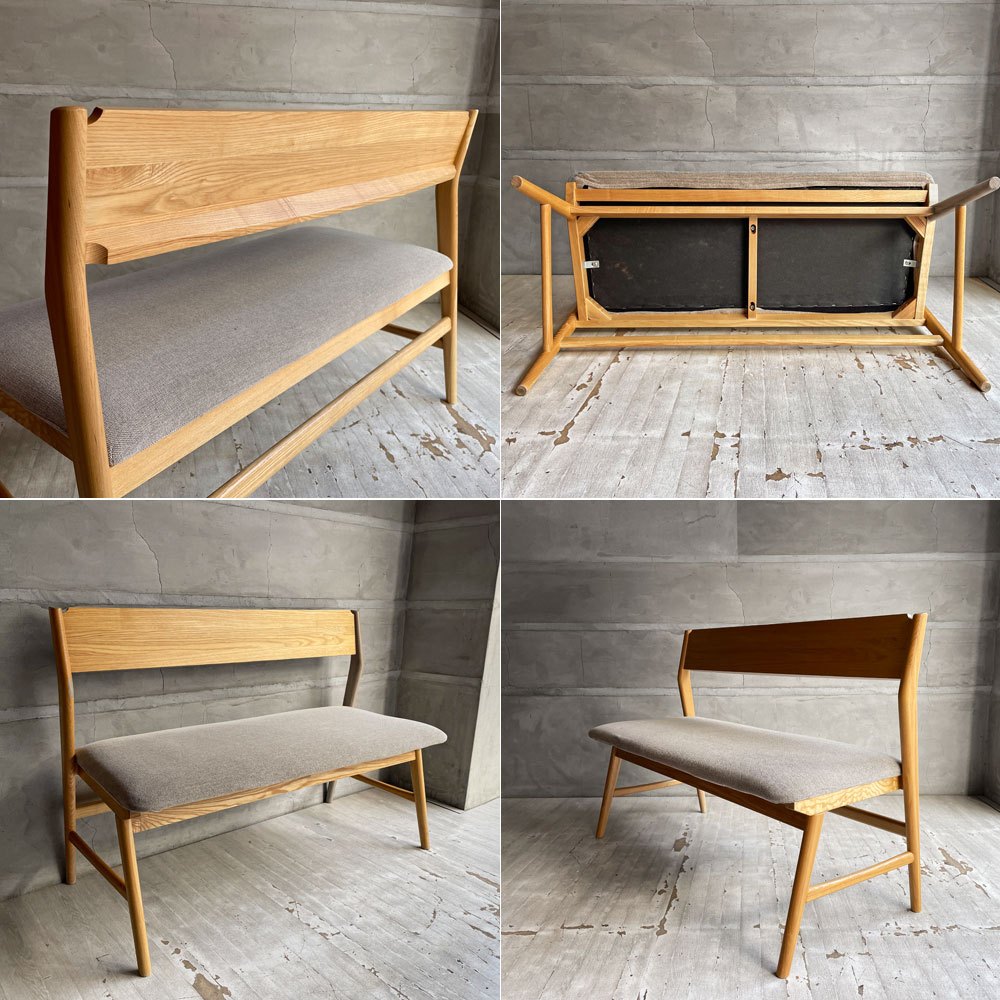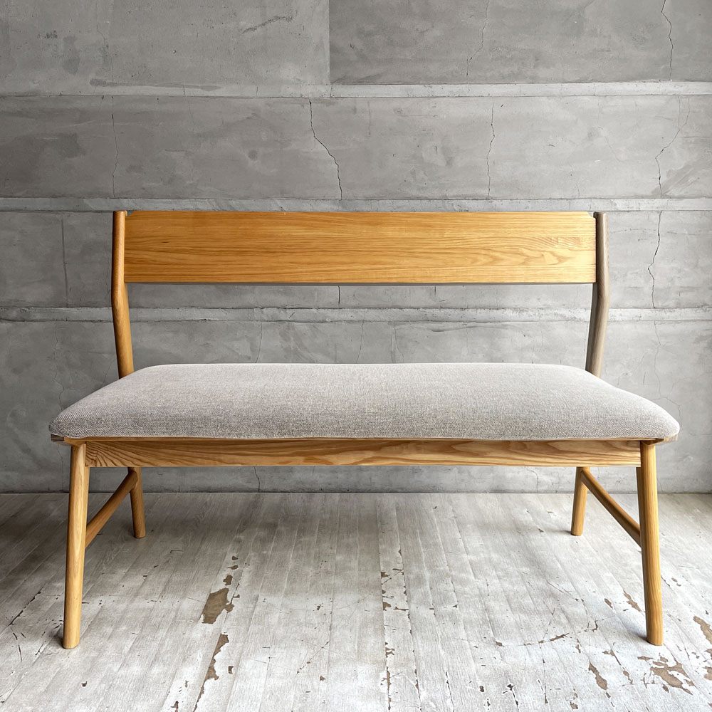 ウニコ unico シグネ SIGNE ダイニングベンチ バックレスト アッシュ材 グレーファブリック W110cm ナチュラル 北欧テイスト ♪