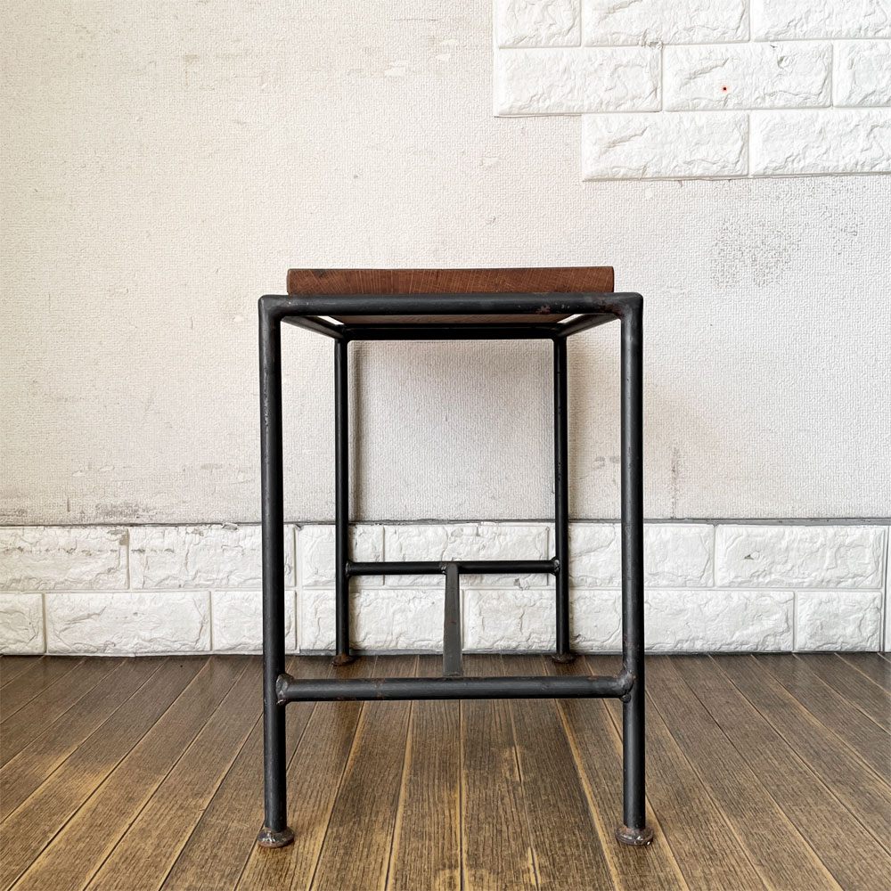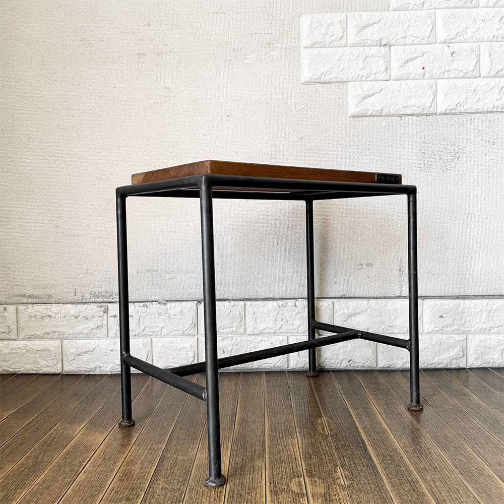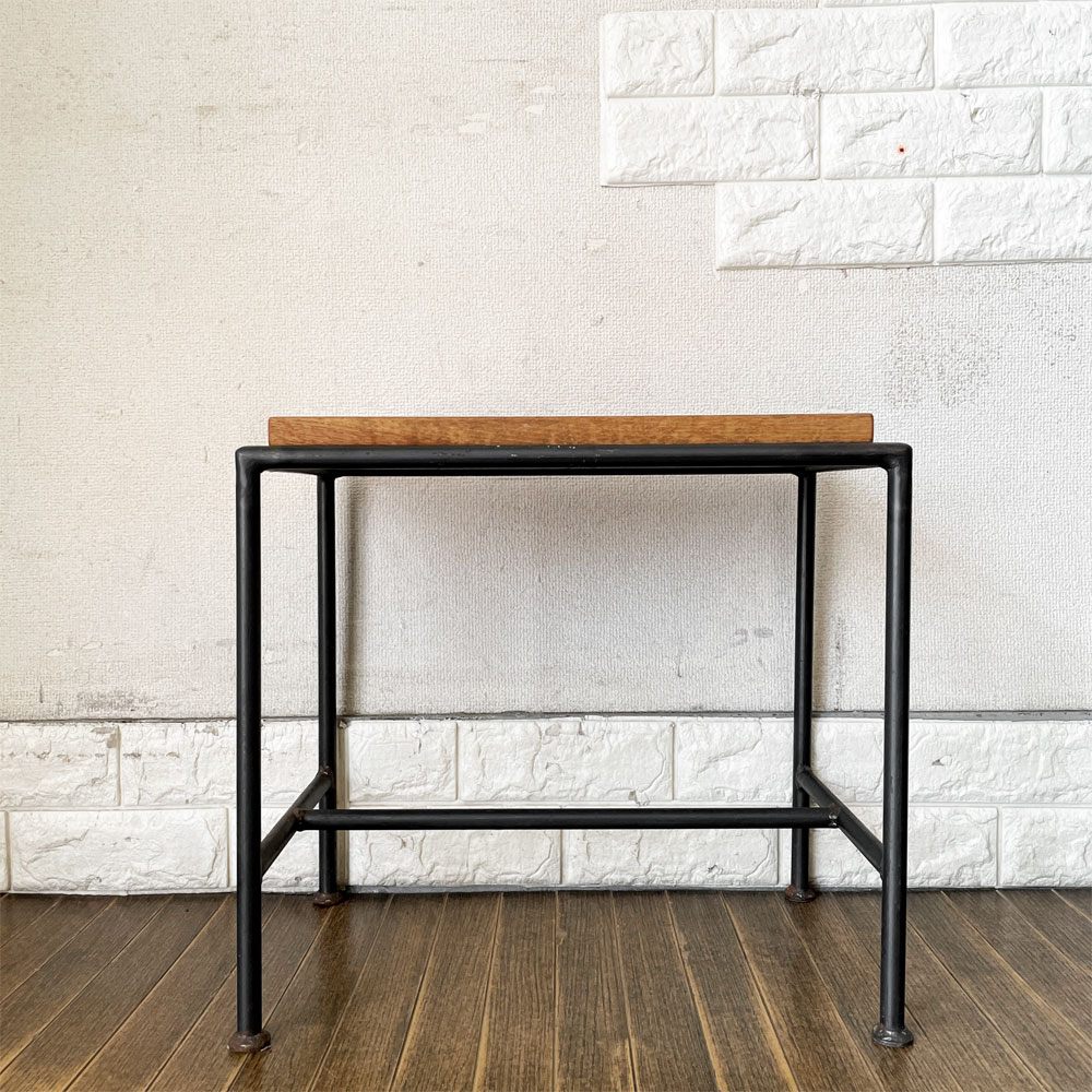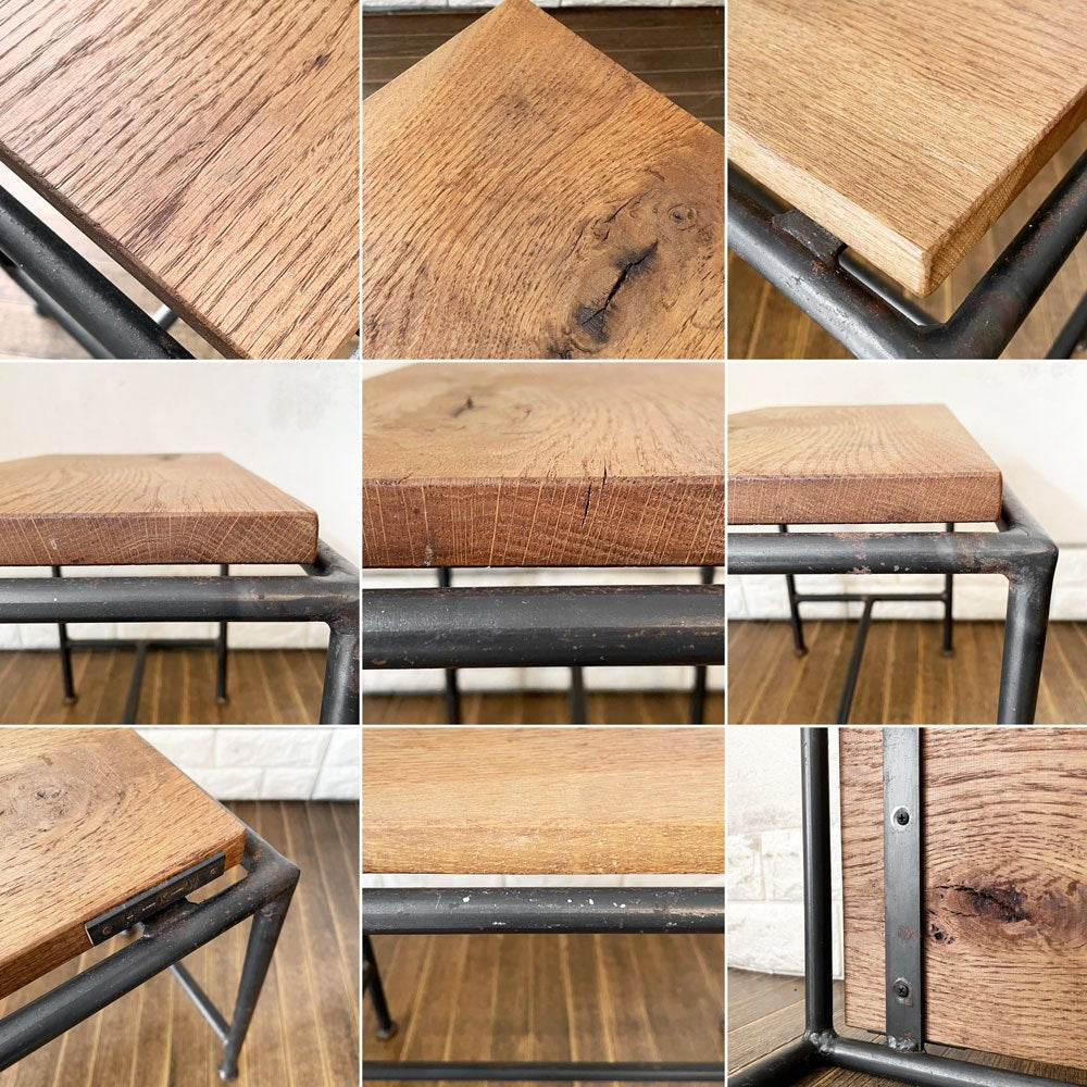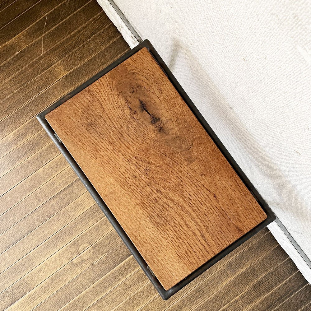 ヒロファニチャー hiro furniture オーク材 × アイアンフレーム サイドテーブル スツール 花台 W45cm インダストリアル ◎