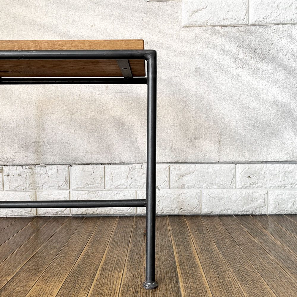 こちらは同社オリジナルのサイドテーブル。荒々しい杢目が残るオーク材の天板に錆や溶接痕が無骨な雰囲気を高めるアイアンフレームを合わせたインダストリアルな1台です。