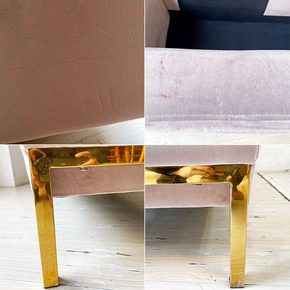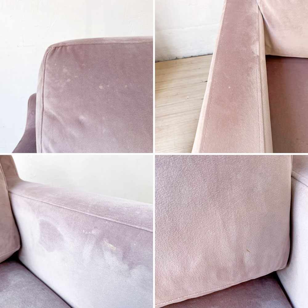 使用に伴い、擦れや線傷、それに伴う起毛の潰れが数か所。また、本体とクッションに軽微な染みや取り切れない汚れがございます。その他、使用に問題となるようなダメージは無く、引き続きご実用いただけるコンディションを保っております。