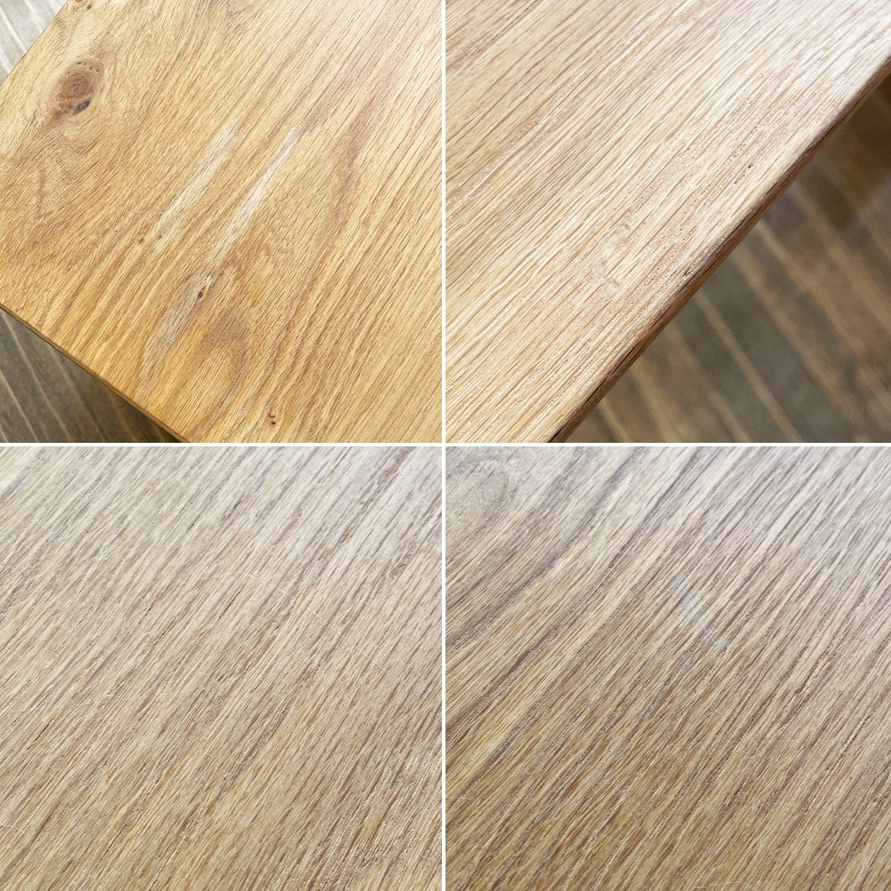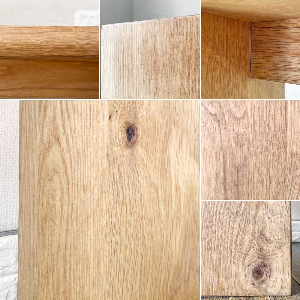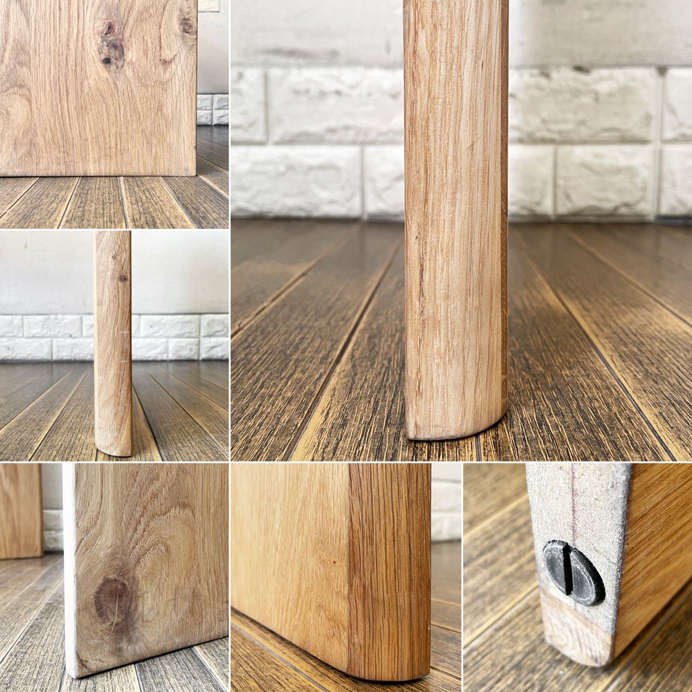 全体に擦れや傷、打痕、木色のムラや色落ち、黒ずみやシミ、ペン痕などの取り切れない汚れ等が散見されます。また木部の接合部にわずかな隙間が見受けられますが、がたつきやぐらつきといった目立ったダメージはございません。無垢材の風合いをお楽しみいただきながらこれからも安心して実用いただけます。