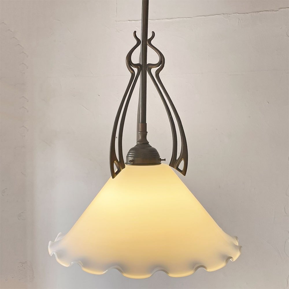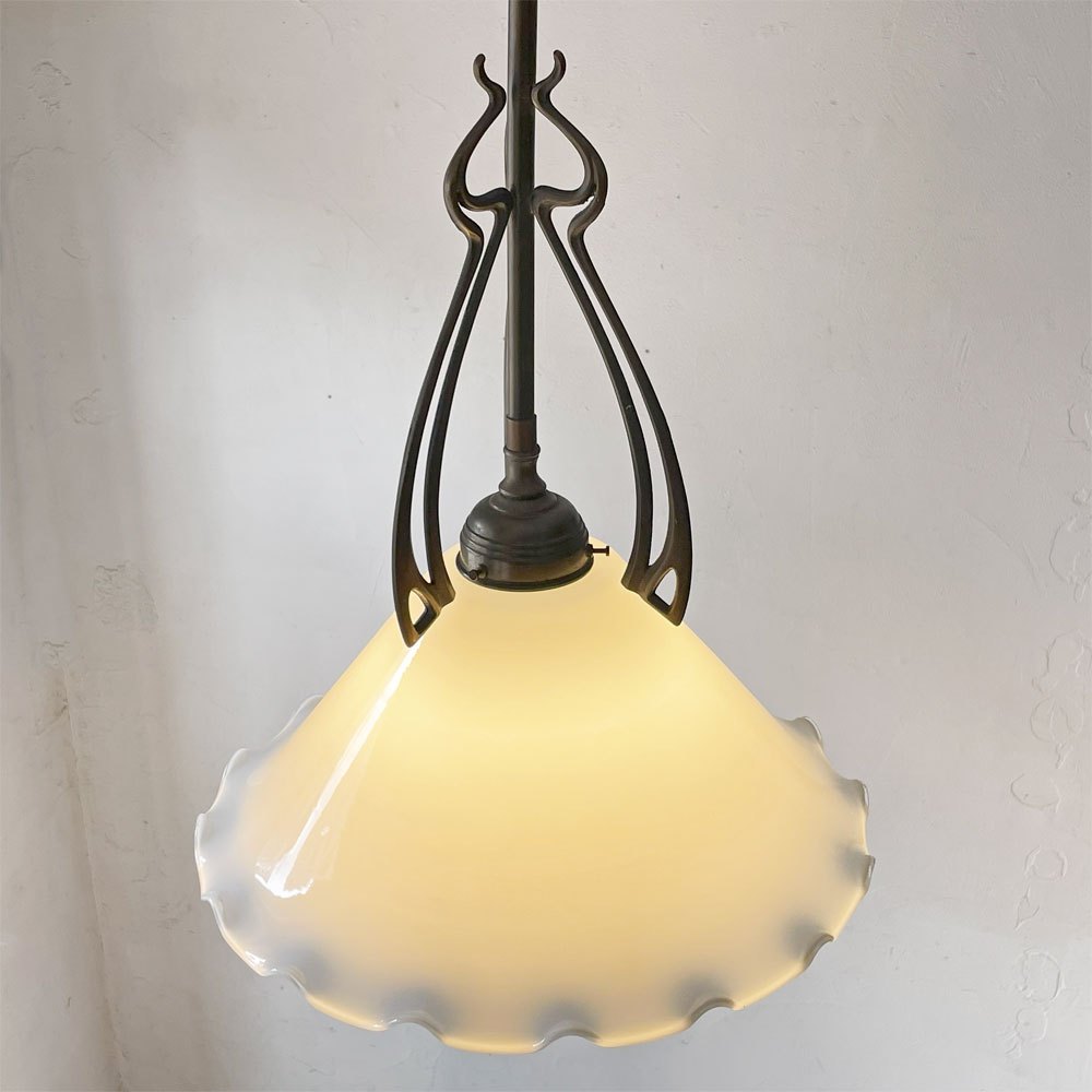 クラシカルスタイル ペンダントライト ミルクガラス アンティーク アールデコ 店舗什器 ★