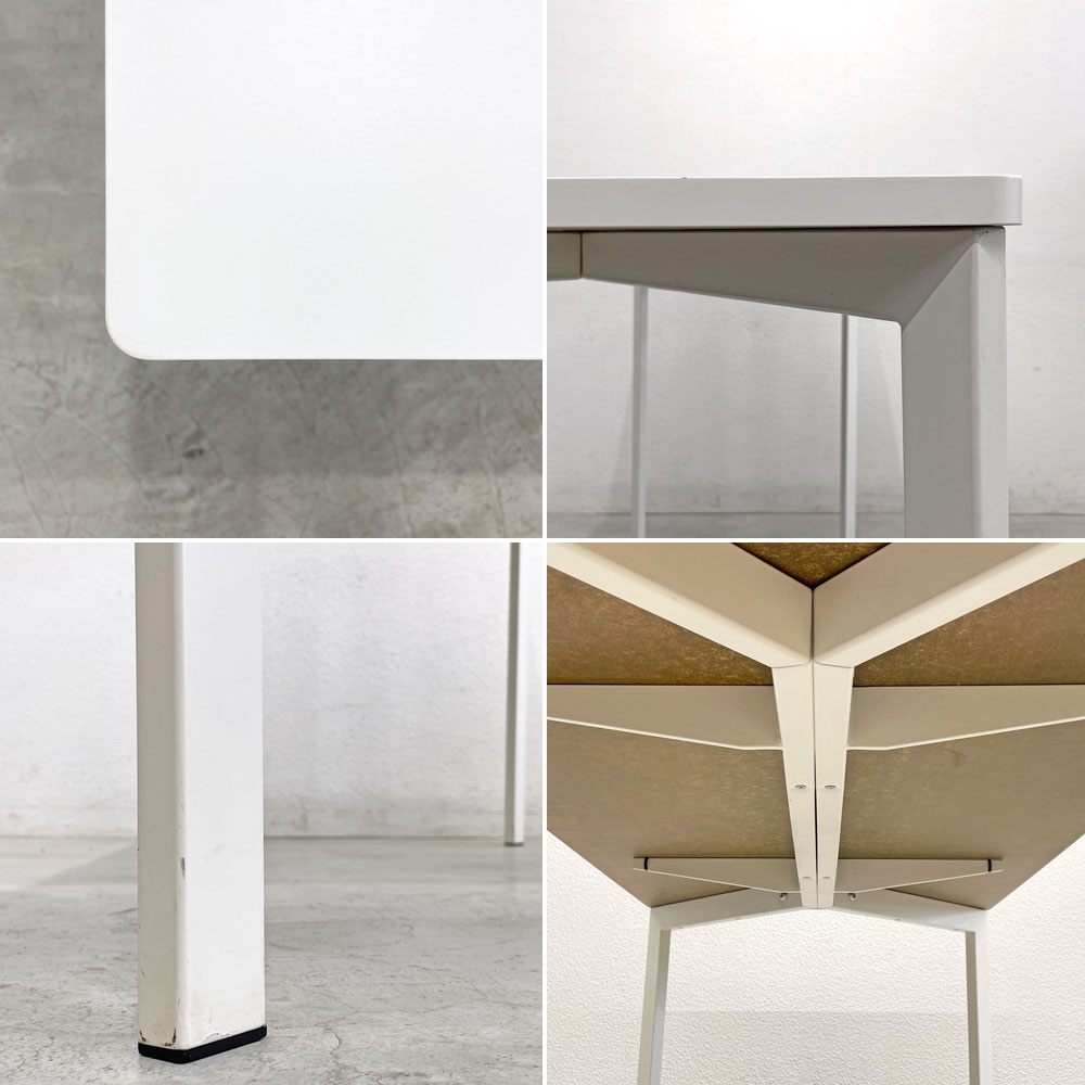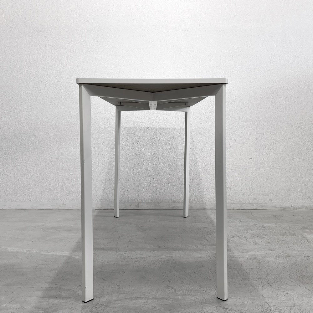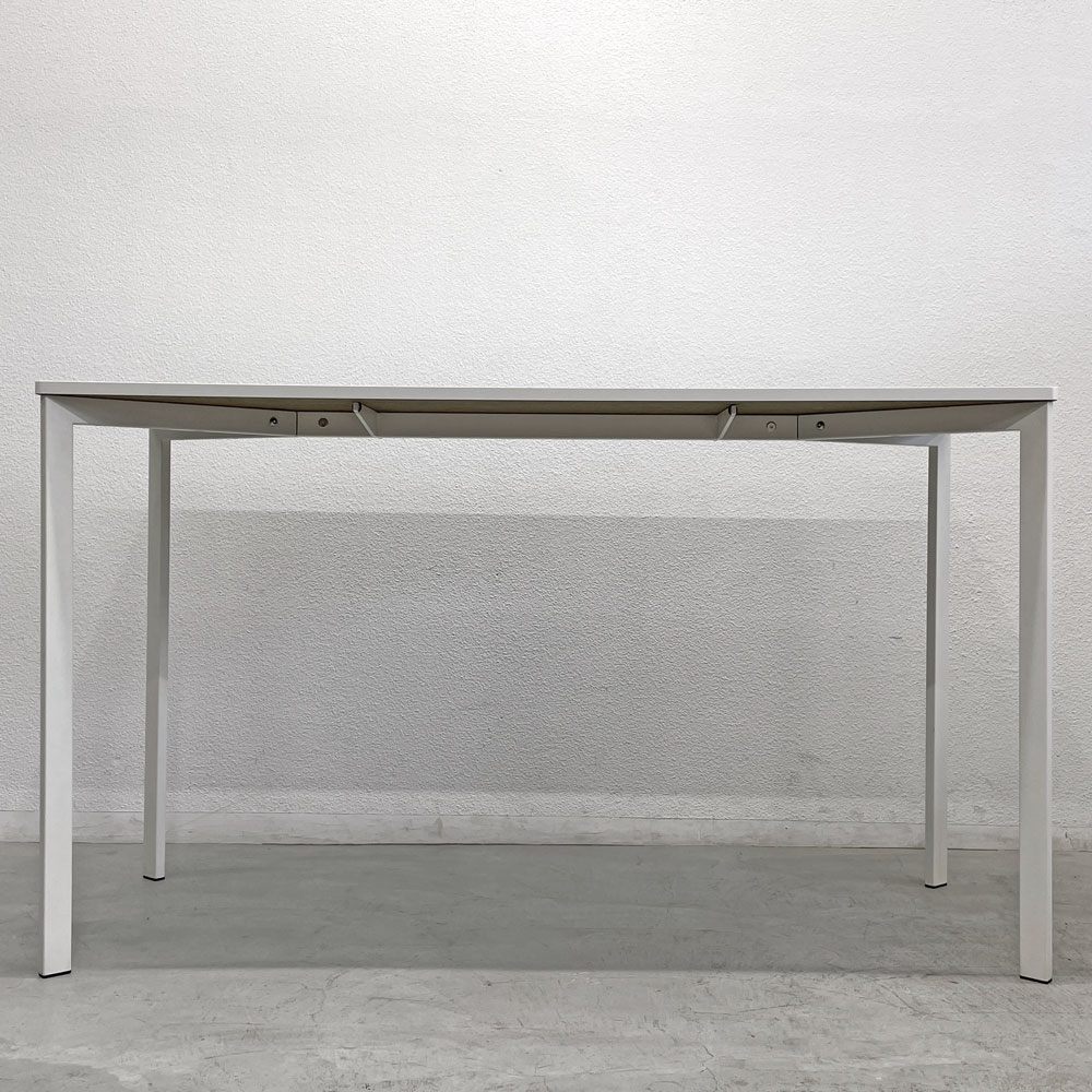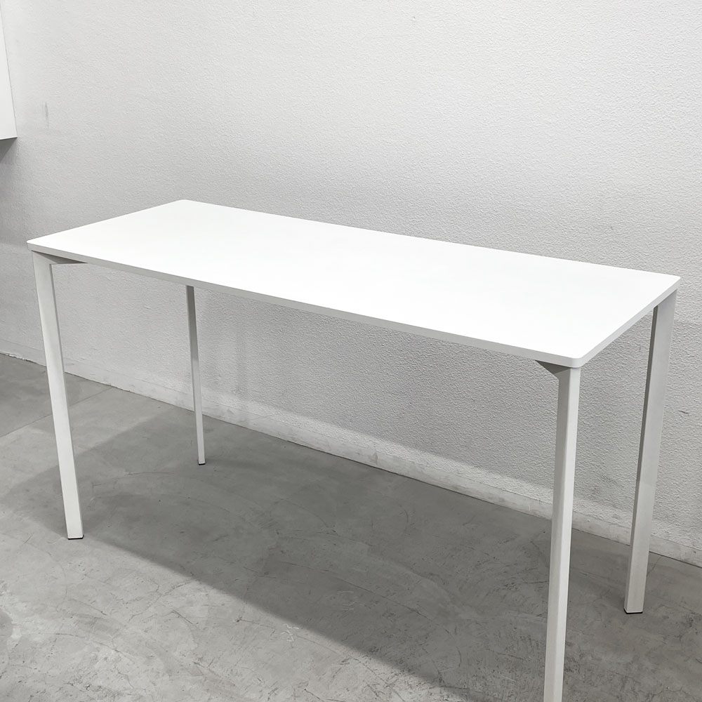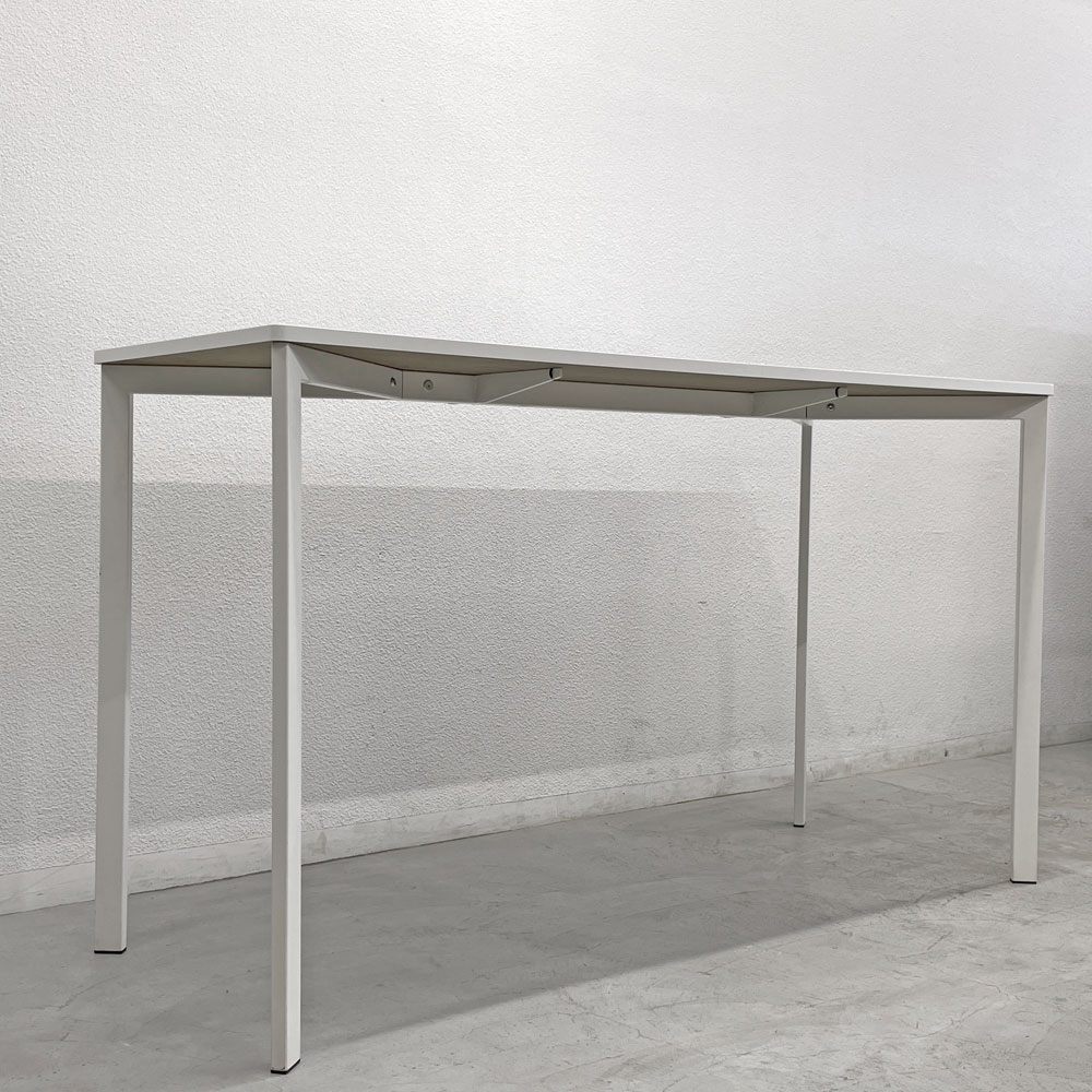 天板はメラミントップとなっており、滑らかな手触りと優れた耐久性を実現。シンプルなホワイトカラーが空間を明るく、清潔感のある印象に演出してくれます。また、スリムな脚部は視覚的にも軽やかで、空間に開放感を与えつつ、しっかりとした安定性も確保されています。