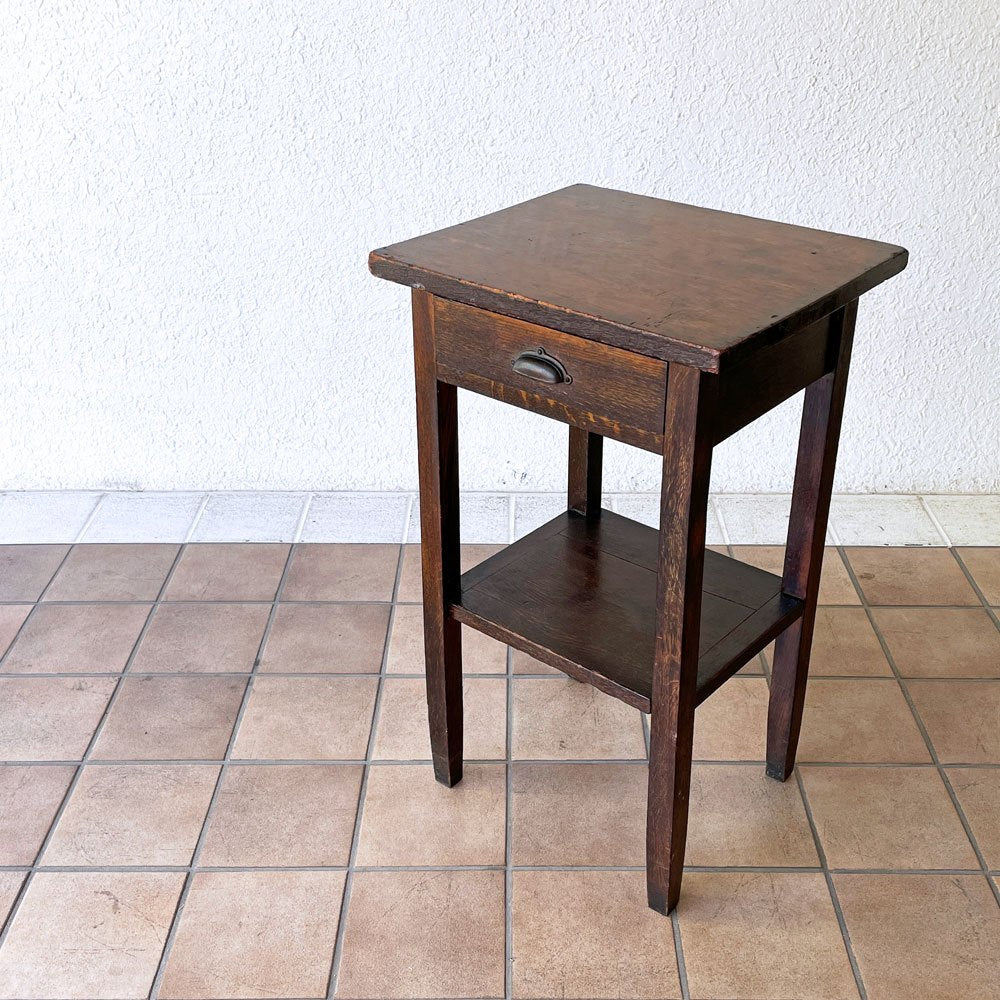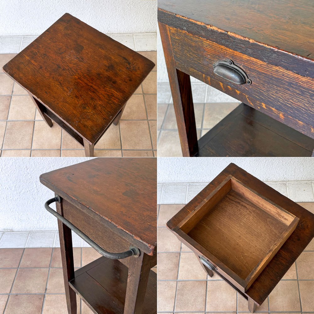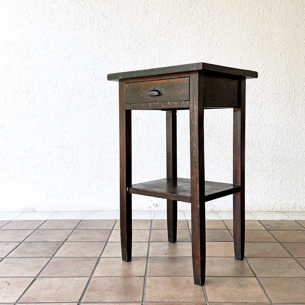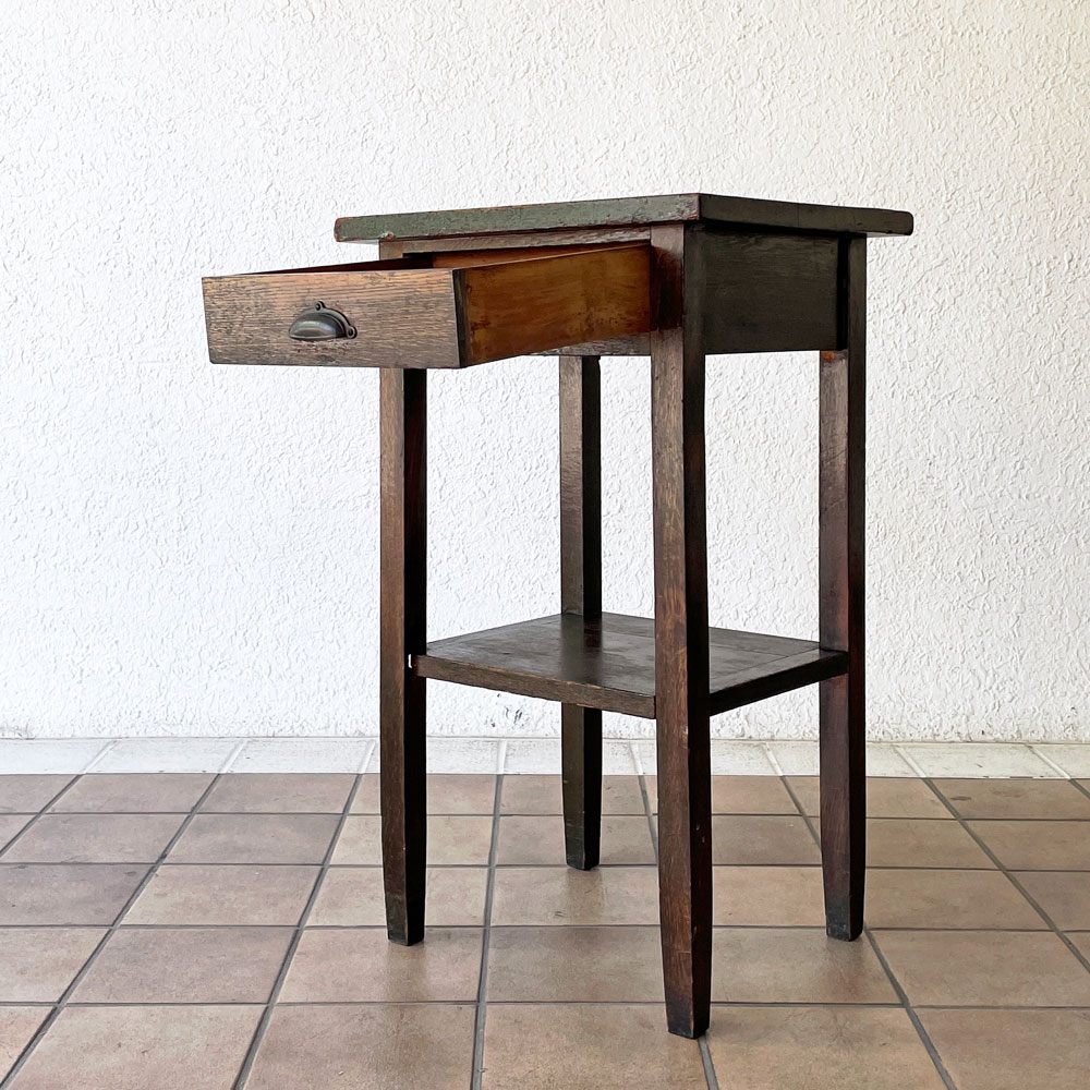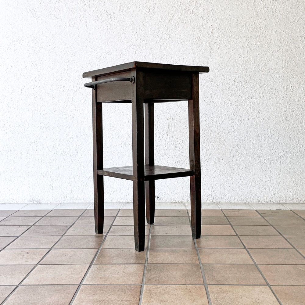 ジャパンビンテージ 木製花台 サイドテーブル フラワースタンド 抽斗1杯 ハンガーバー付き 古家具 店舗什器 ◇