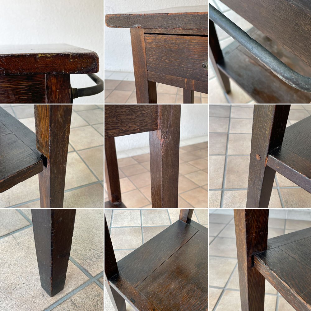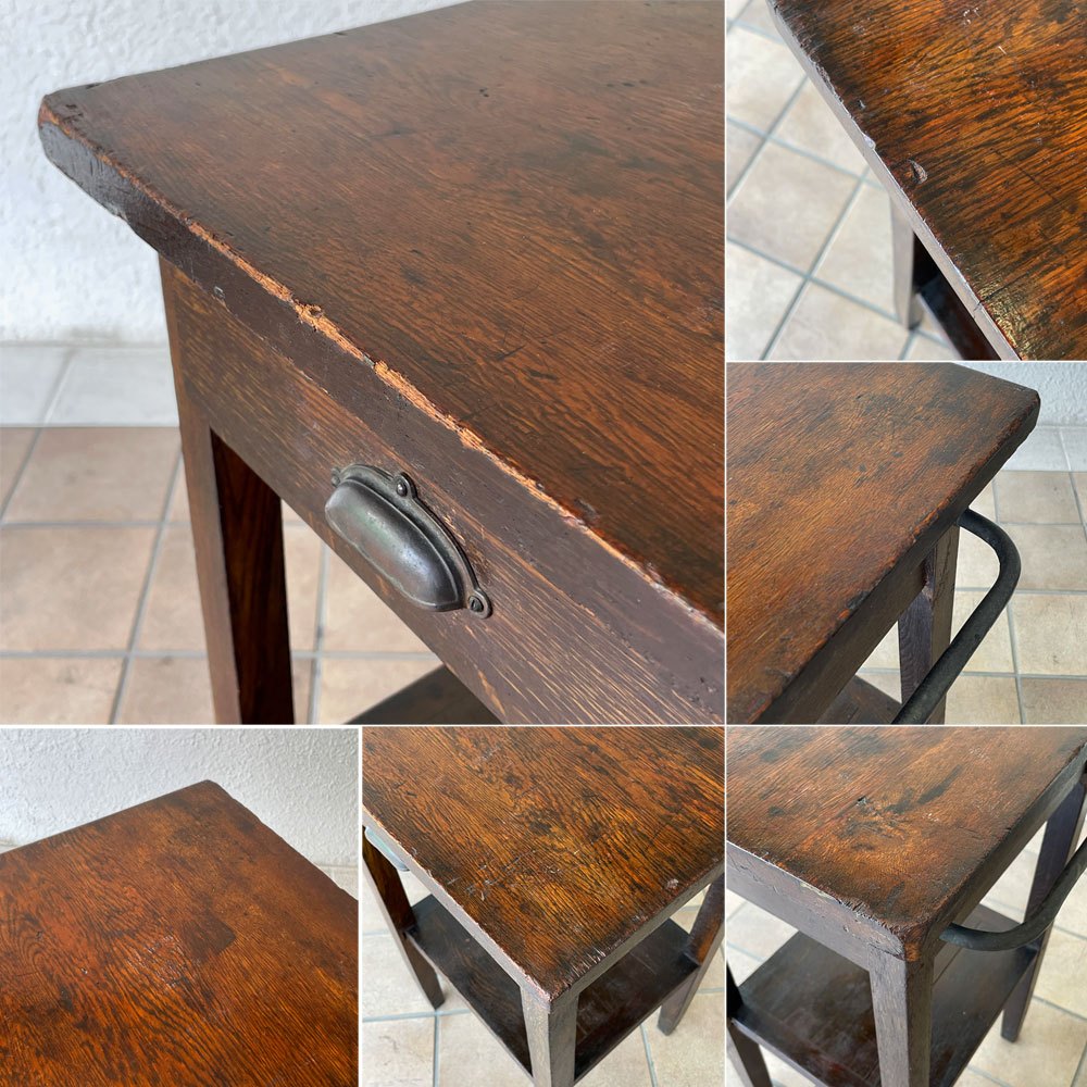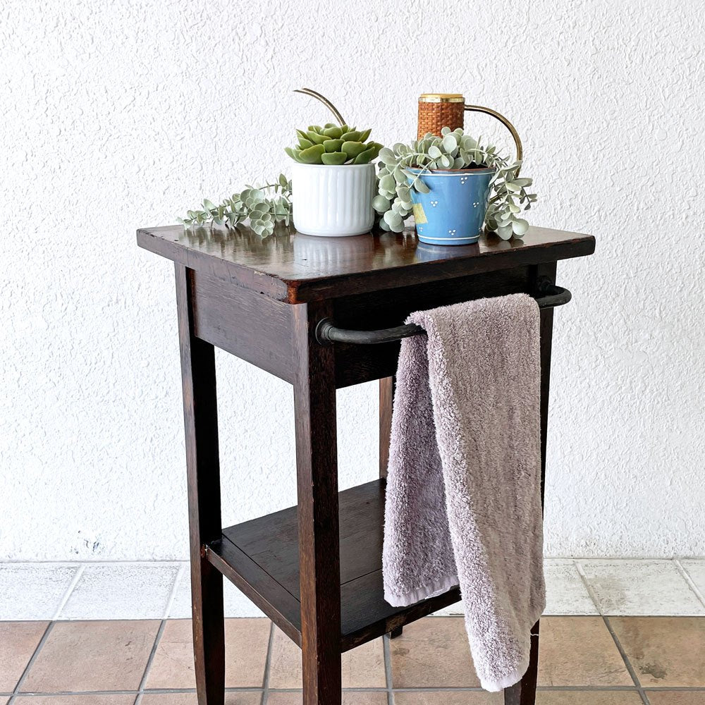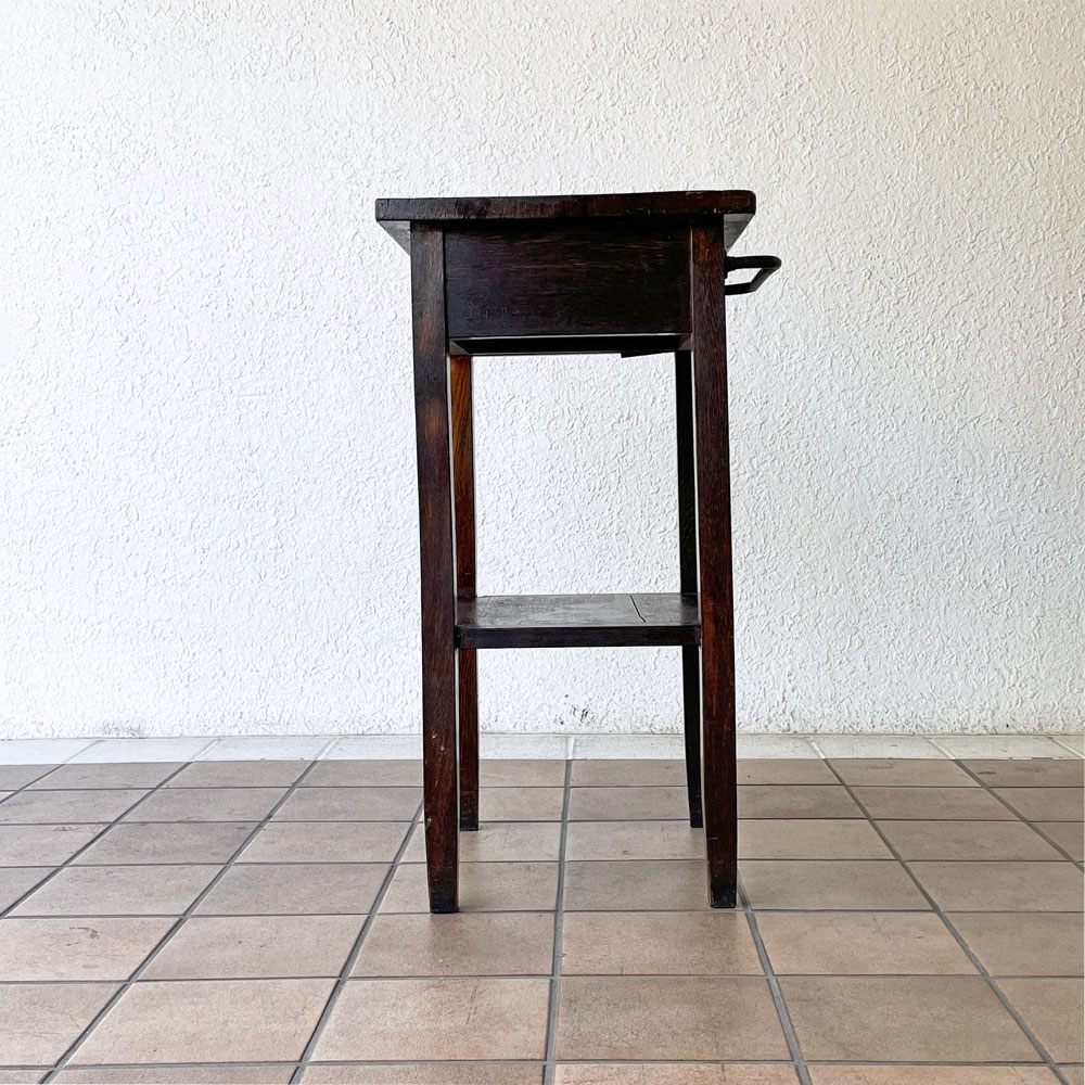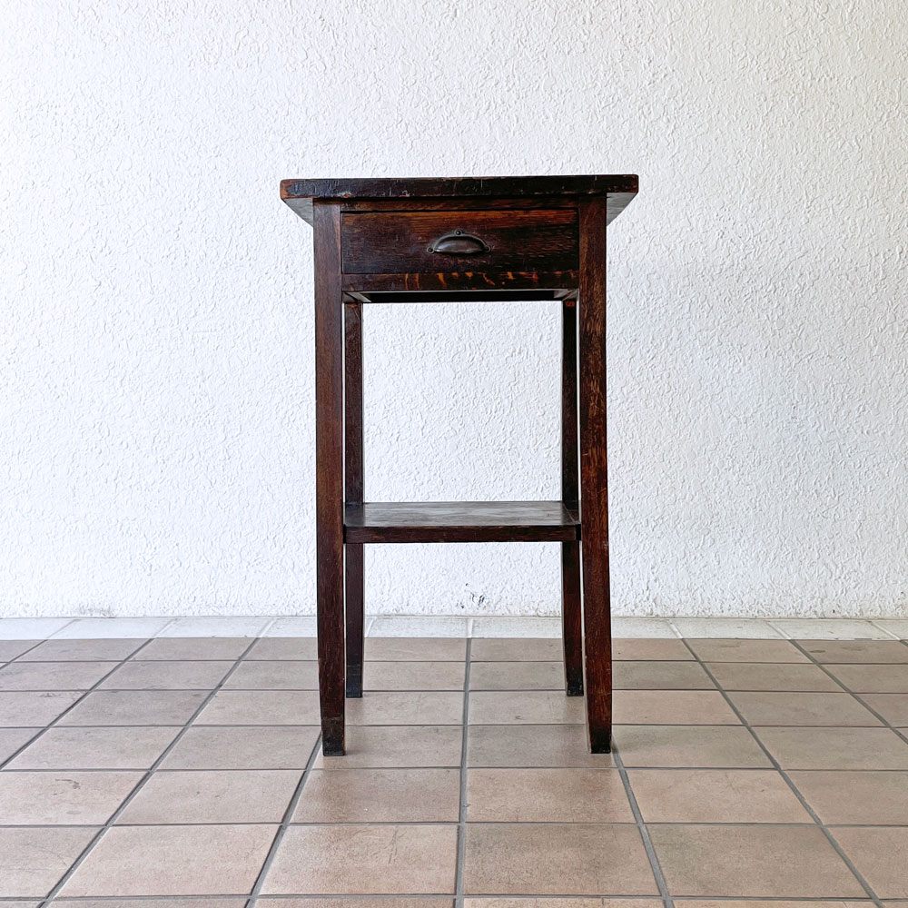 ジャパンビンテージ 木製花台 サイドテーブル フラワースタンド 抽斗1杯 ハンガーバー付き 古家具 店舗什器 ◇