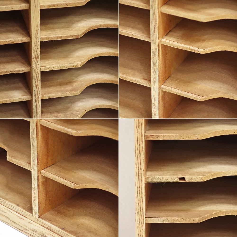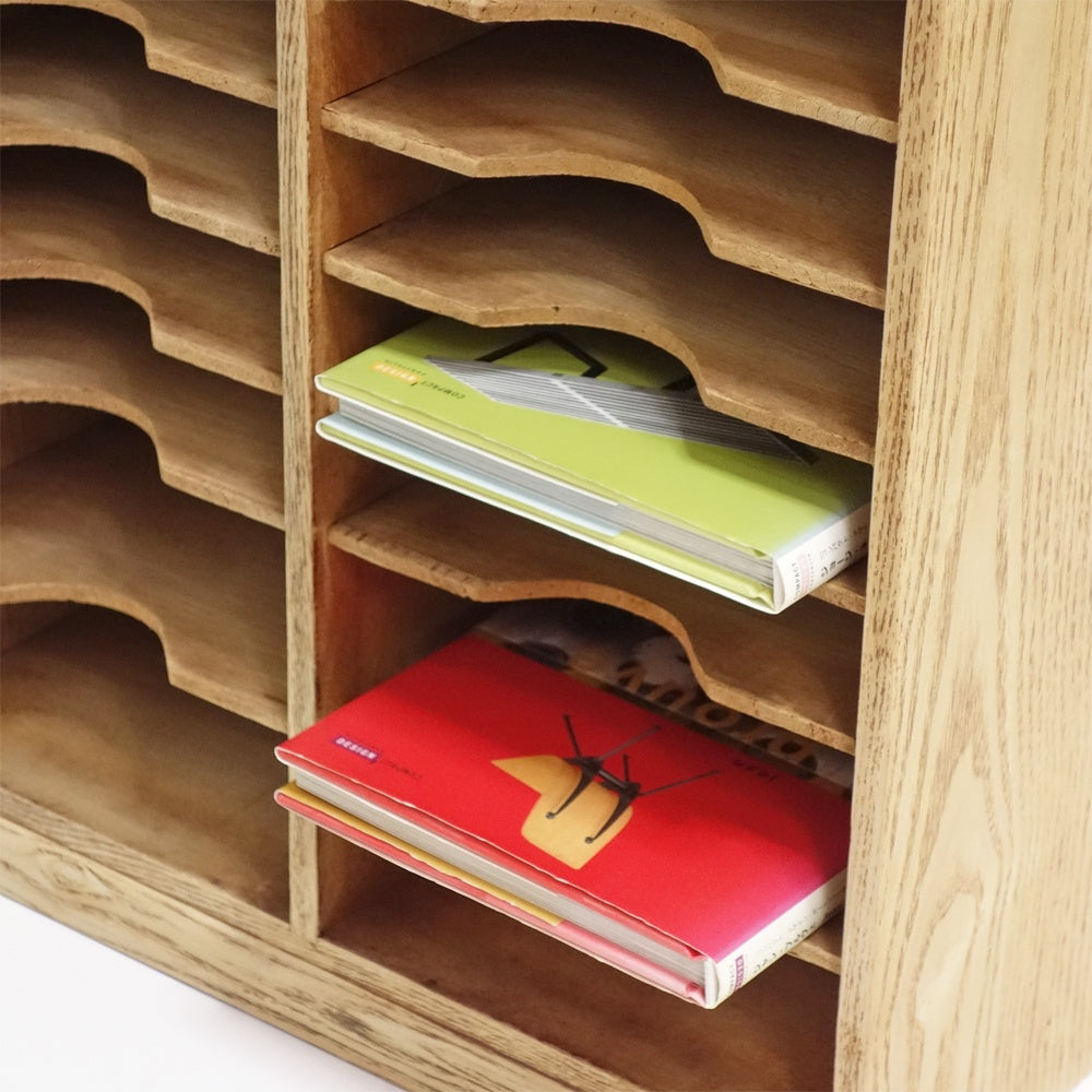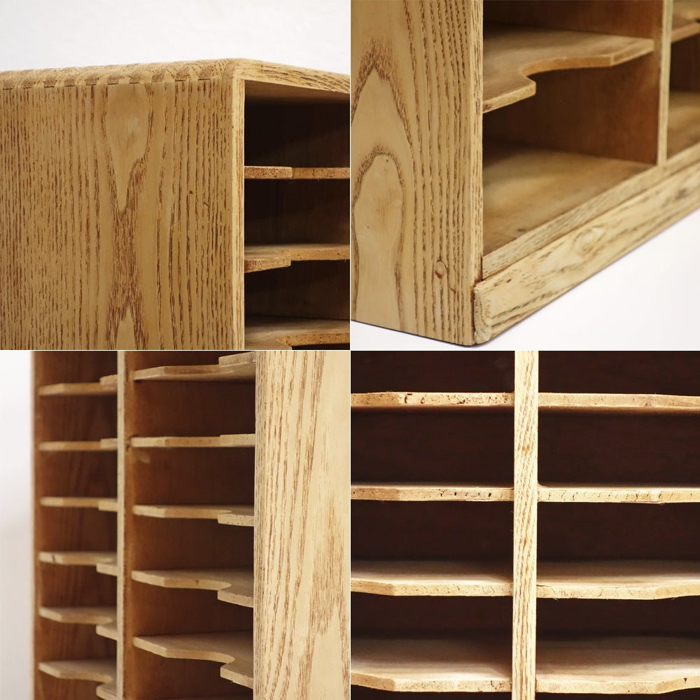 細かく仕切られた棚には、手紙やはがきなどの書類の他、プレートやファブリックなどの収納としてもお勧め。
