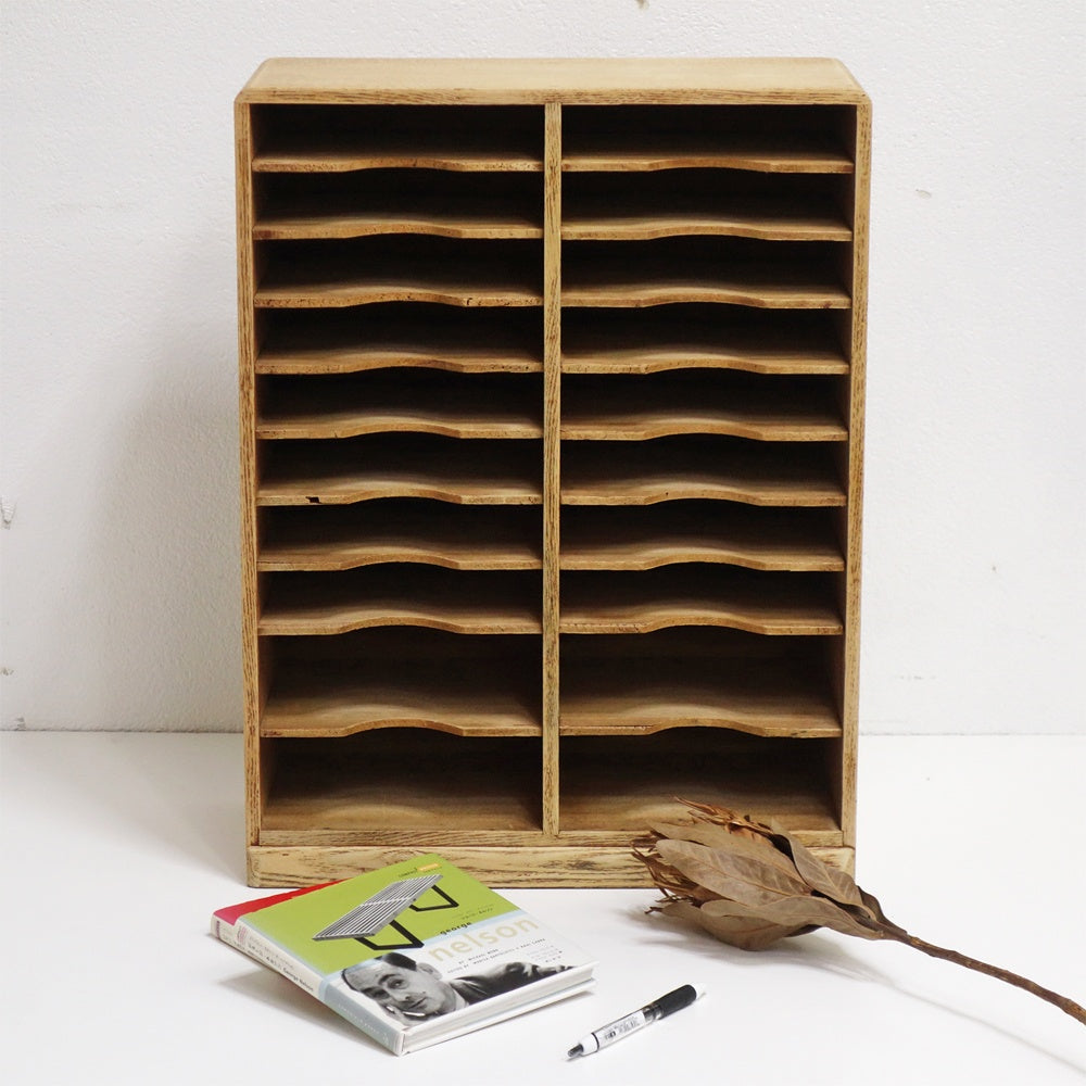 ジャパンビンテージ Japan vintage 古い木味の書類棚 カルテラック 木製シェルフ W39.5cm 古家具 昭和レトロ ●