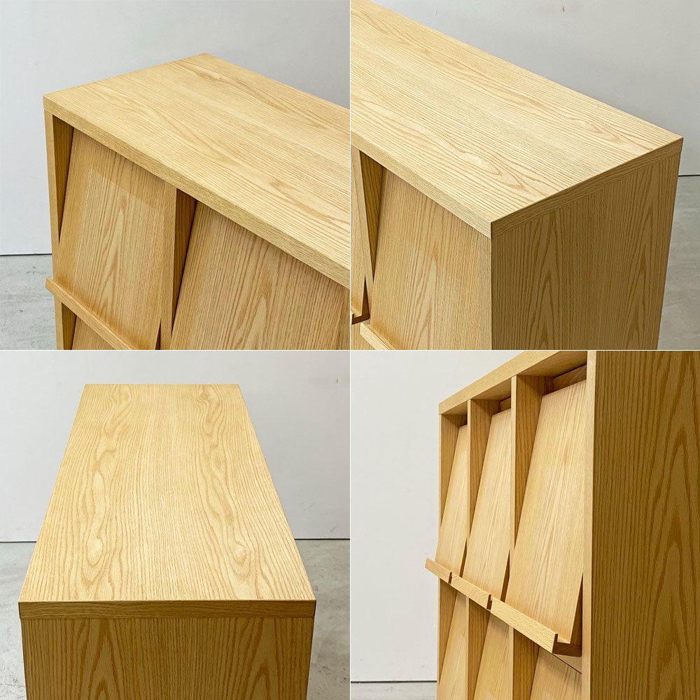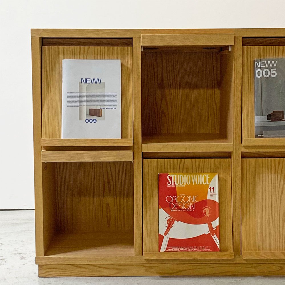 こちらは同社のオリジナルプロダクト『 バンクロフト BANCROFT ブックシェルフ 』。暮らしに溶け込むシンプルなデザイン本棚は、前面のフラップアップ扉に本や雑誌、レコード等をディスプレイして、空間を彩る事が出来ます。