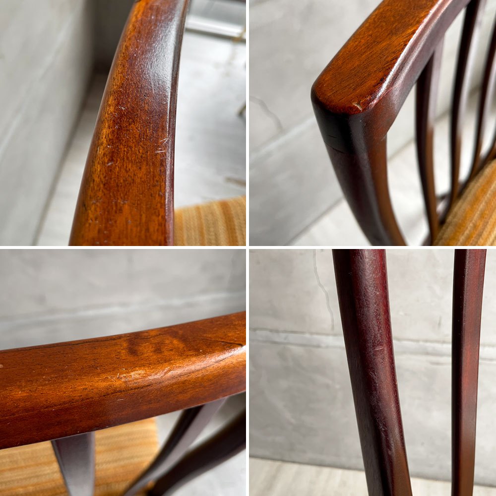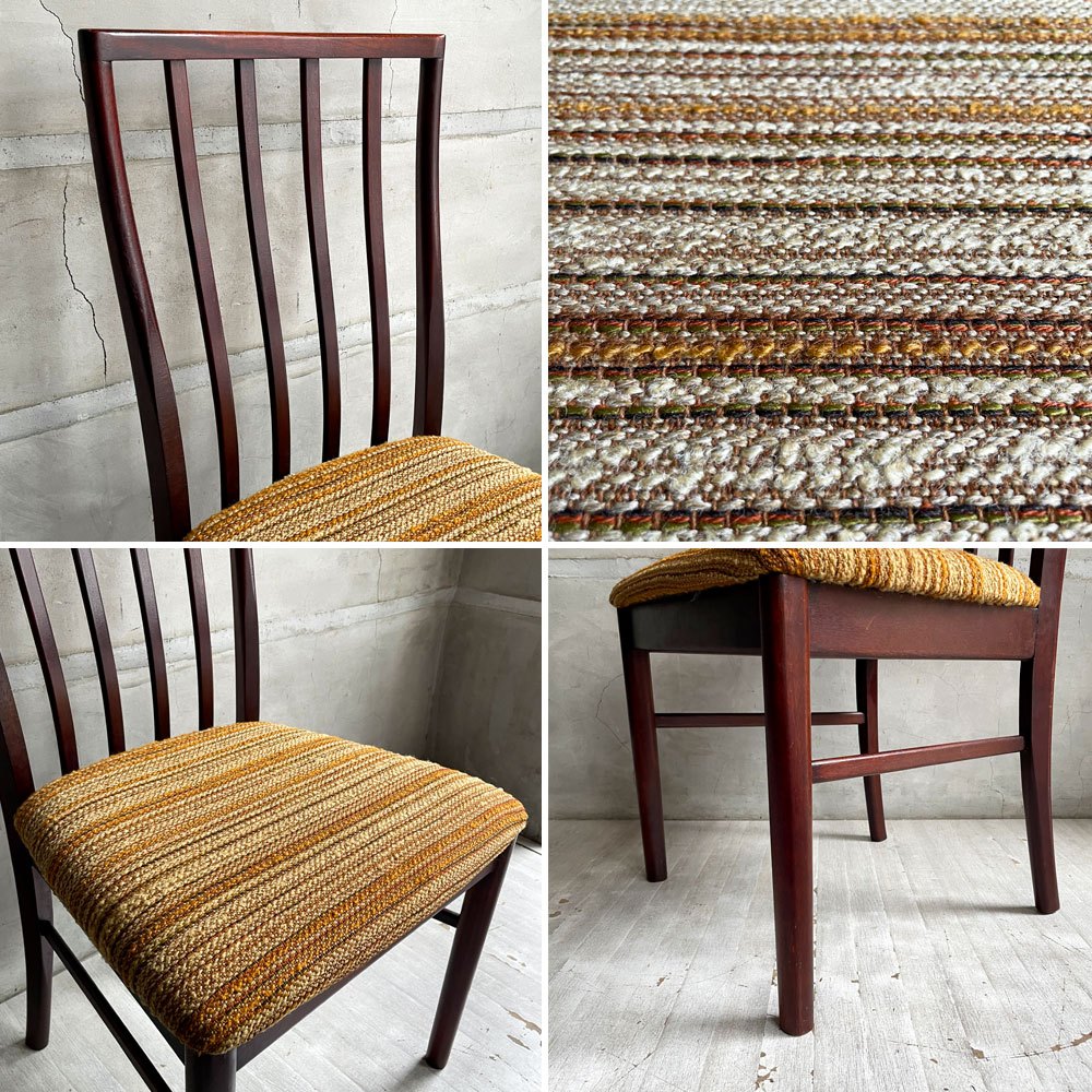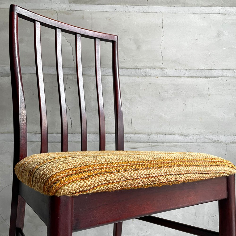 マッキントッシュ A.H.McINTOSH サイドチェア ダイニングチェア 4スラット ウッドフレーム ファブリックシート マホガニー材 UKビンテージ Vintage 英国家具 座面張替済 B ♪