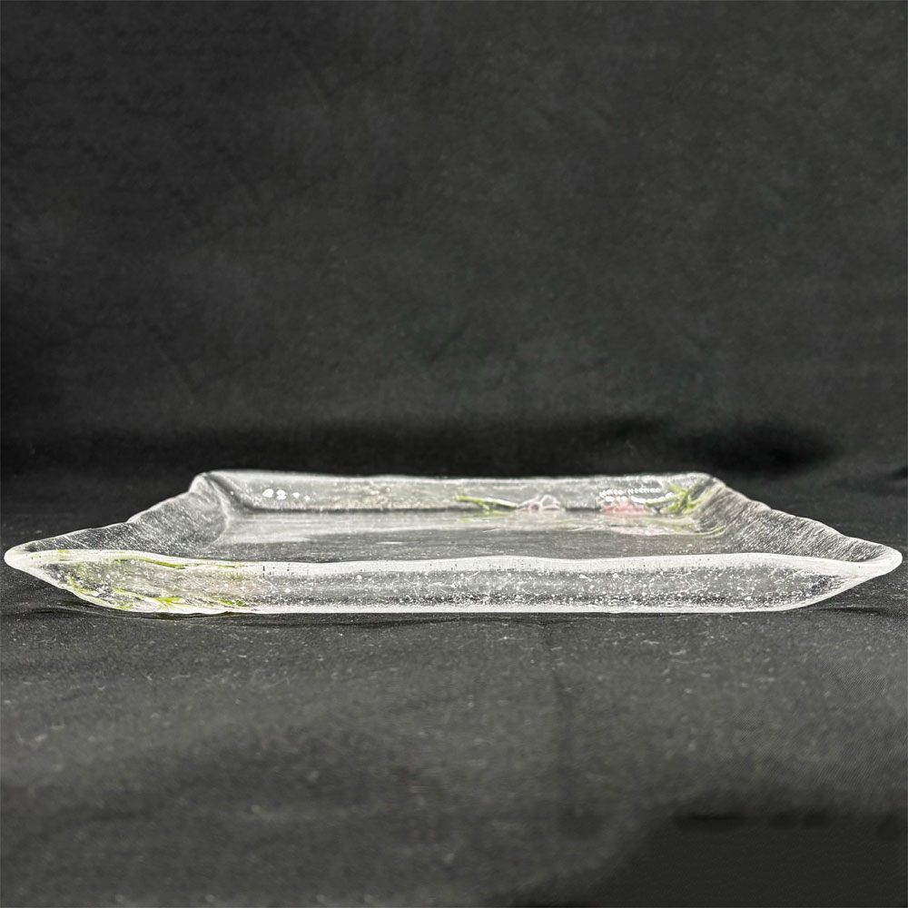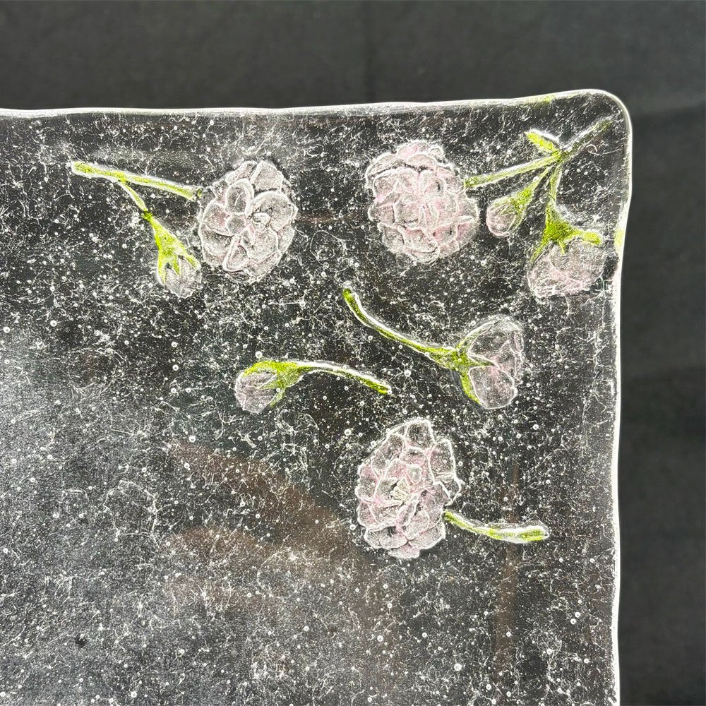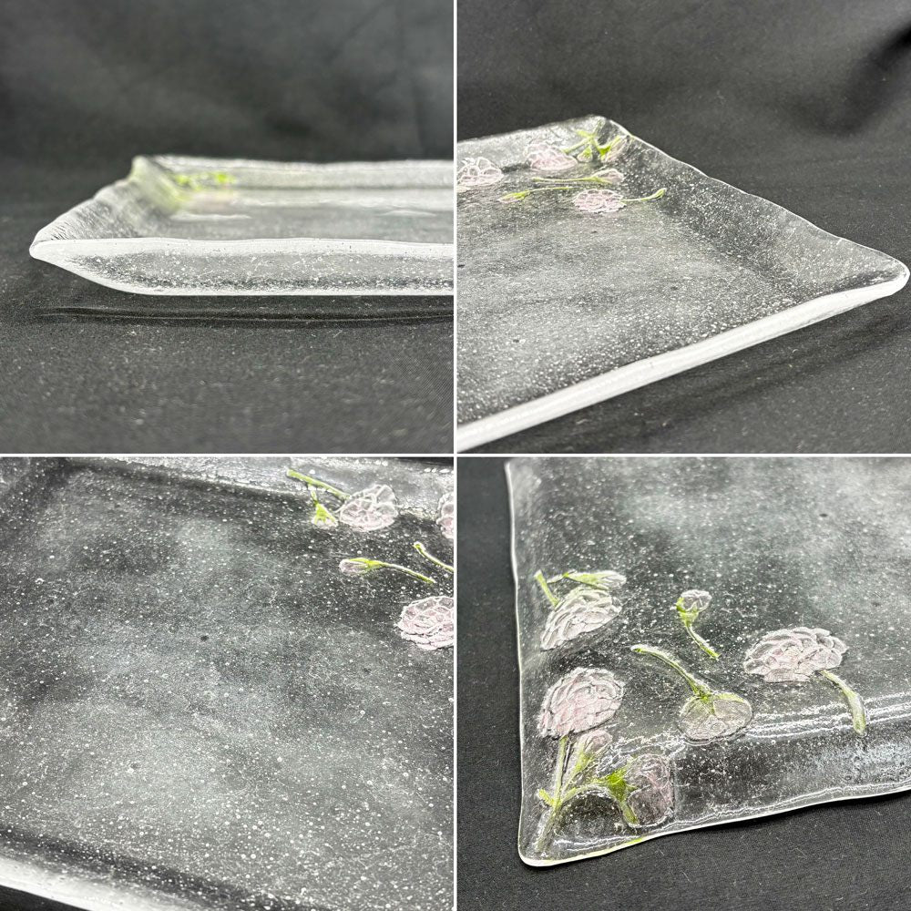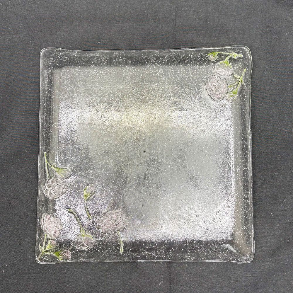 岡田多恵 ガラス 角皿 スクエアプレート パートドヴェール 花 24cm 現代作家 ●