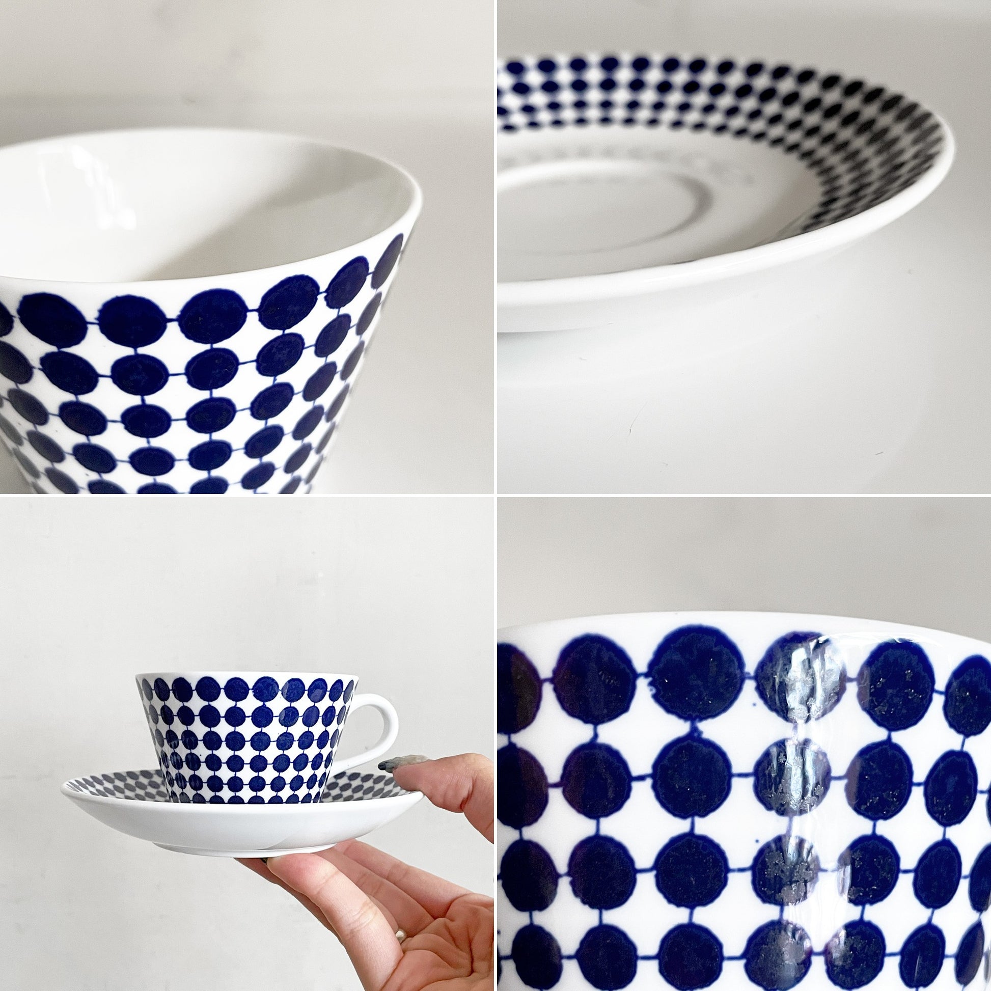 器の形状に合わせてドット柄のサイズを変化させており、遠近法の効果で製品に奥行き感を与えると同時に人の目を惹き付ける魅力を感じます。男性にもファンが多い逸品です。