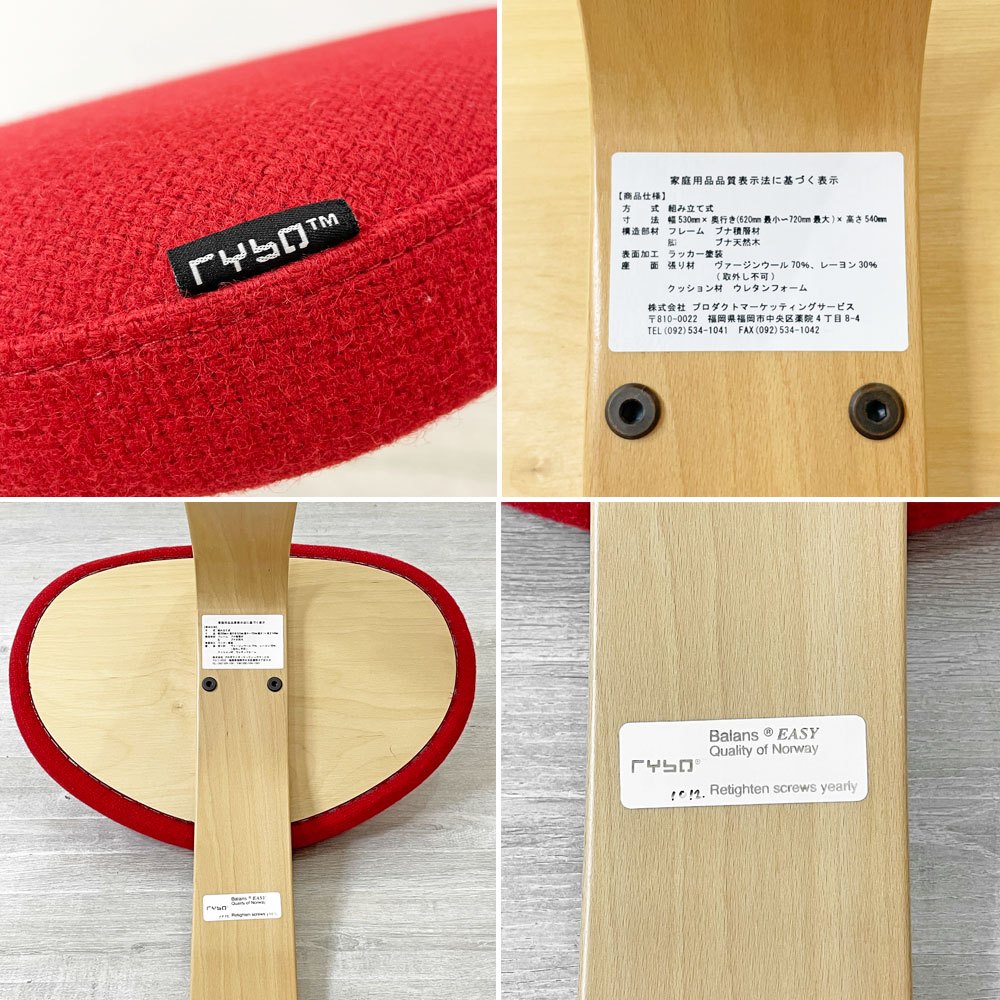リボ Rybo バランスイージー Balans Easy バランスチェア レッド 学習椅子 姿勢矯正 ●