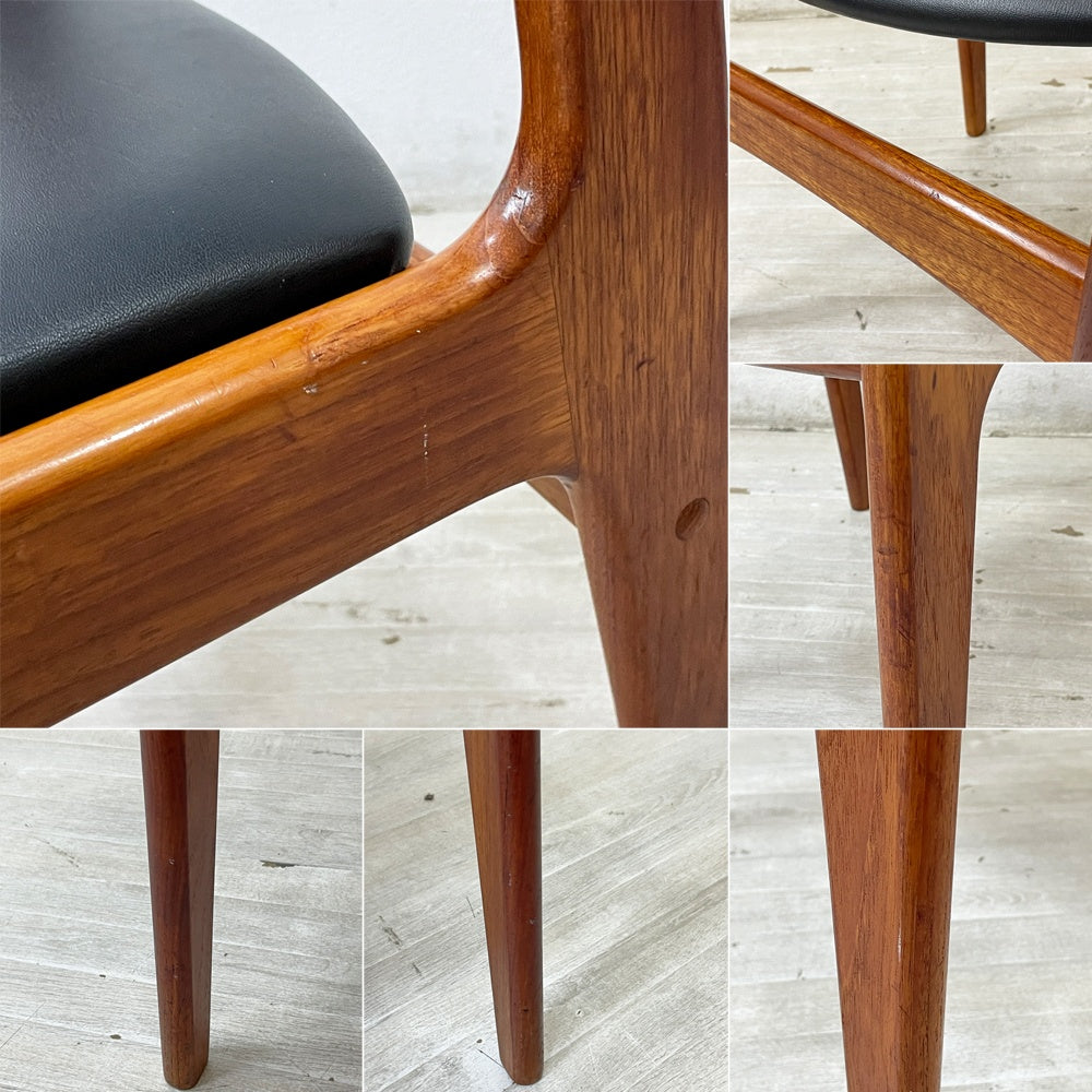 ディースキャン D-SCAN チーク材 ダイニングチェア アームレス レザー 本革 デンマークビンテージ 北欧 B ●