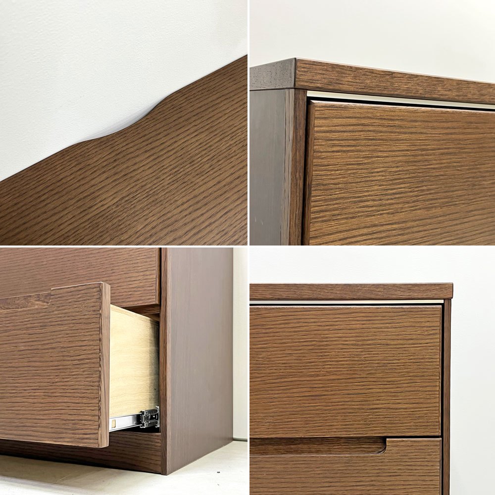 オーク材の深みのある色合いが、空間に溶け込み暮らしを豊かに。抽斗には桐材が使用されており、移動の際の身体への負荷も少なく、調湿性や防虫防カビ効果も期待できます。