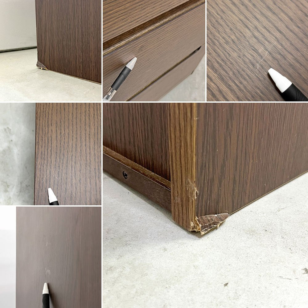 ベース部分に一カ所剥がれが生じております。また全体に僅かな擦れが数箇所、天板に軽微な線傷がございますが、美観を損なうようなダメージではなく、これからも実用いただけるコンディションを保っております。
