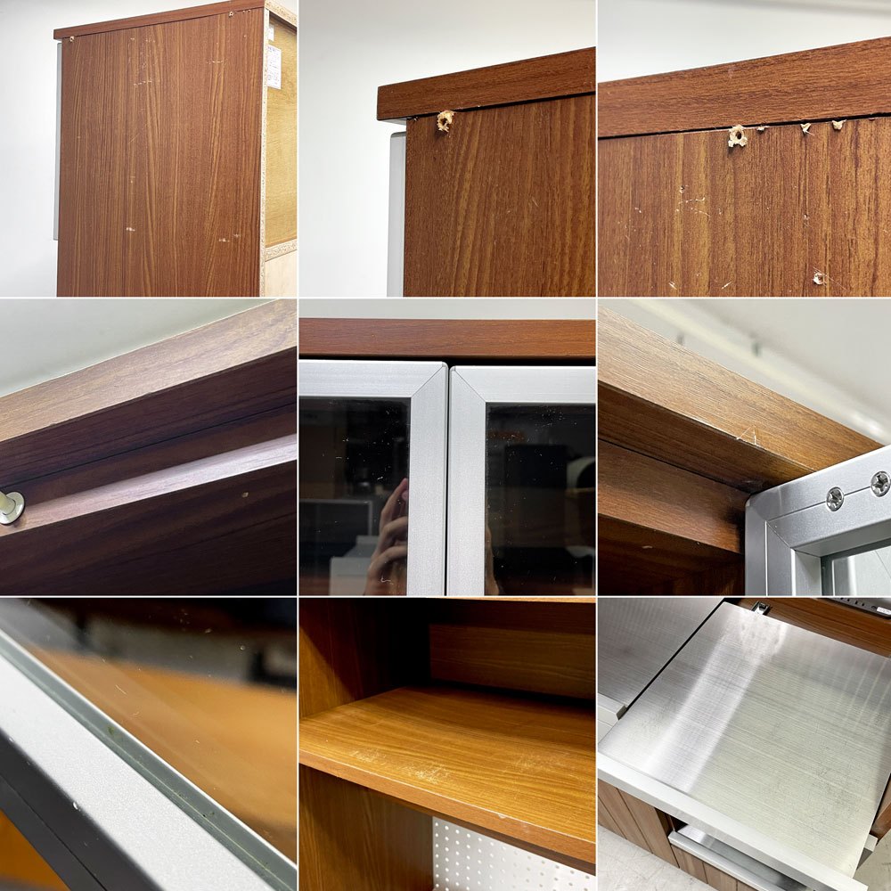また天板や上段・中段の各棚板は、経年に伴うたわみや歪みが見られ、それに伴い観音扉は僅かに上下のズレが生じておりますが、現状実用に問題はございません。