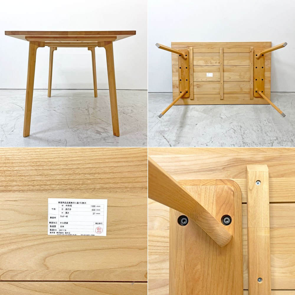 モモナチュラル MOMO Natural ダイニングテーブル RECT TOP 27 + CROCHET LEG AL W130cm アルダー材 ナチュラルモダン 定価¥86,500 ●