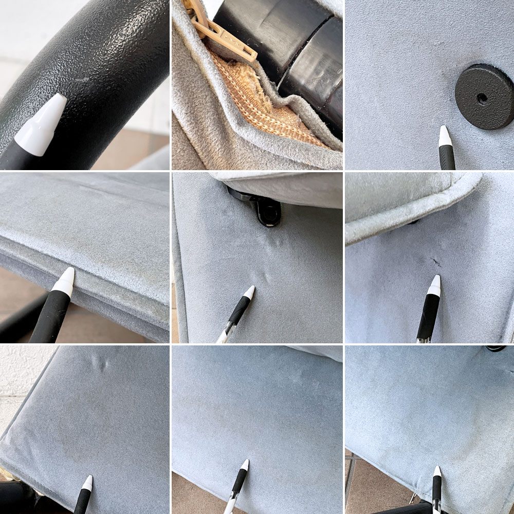 使用に伴う擦れ傷の他、細かな毛羽立ち、角や座面下側を中心としたうっすらとした染み、座面にはややヘタリが感じられ沈み込みがございますが、いずれも大きく美観を損なうものではございません。ご使用に問題となるダメージは無く、ハンモックのような包まれる座り心地を楽しみながらお使い頂ける、USED品として概ね良好なコンディションを保っております。