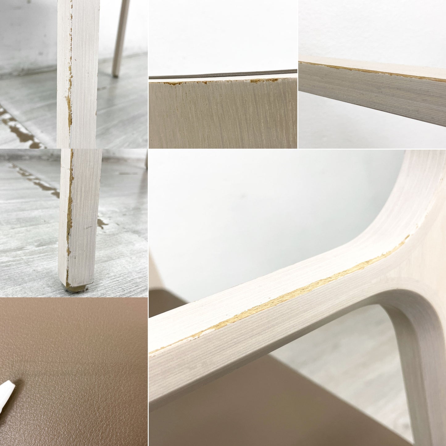 使用に伴い、フレームには擦れや打痕、傷などによるペイントロスが散見されます。また座面カバーには擦れや薄っすらとしたペン痕、裏面に染み、座面ヌードに黄ばみやシミが見受けられます。その他、取り切れない汚れ等がございますが、使用上問題となる大きなダメージはございません。これからも安心してご使用頂けるコンディションを保っております。