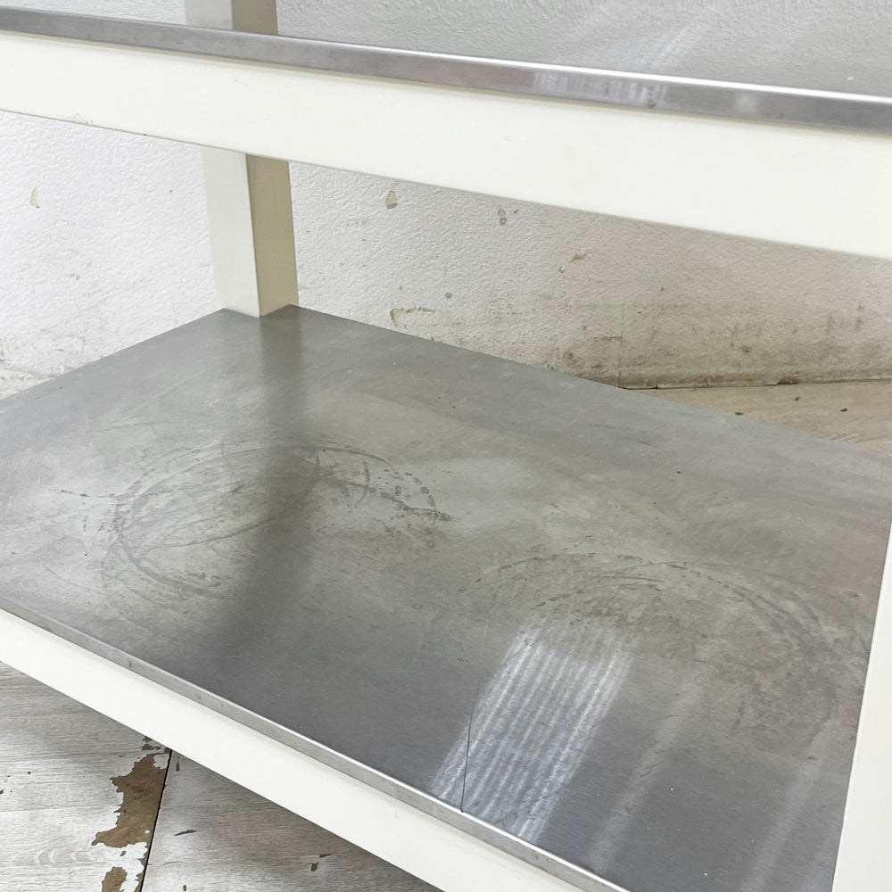 ワゴントップには堅牢なオーク無垢材を使用し、取り外しが可能なステンレスシェルフを下部に2段配置。