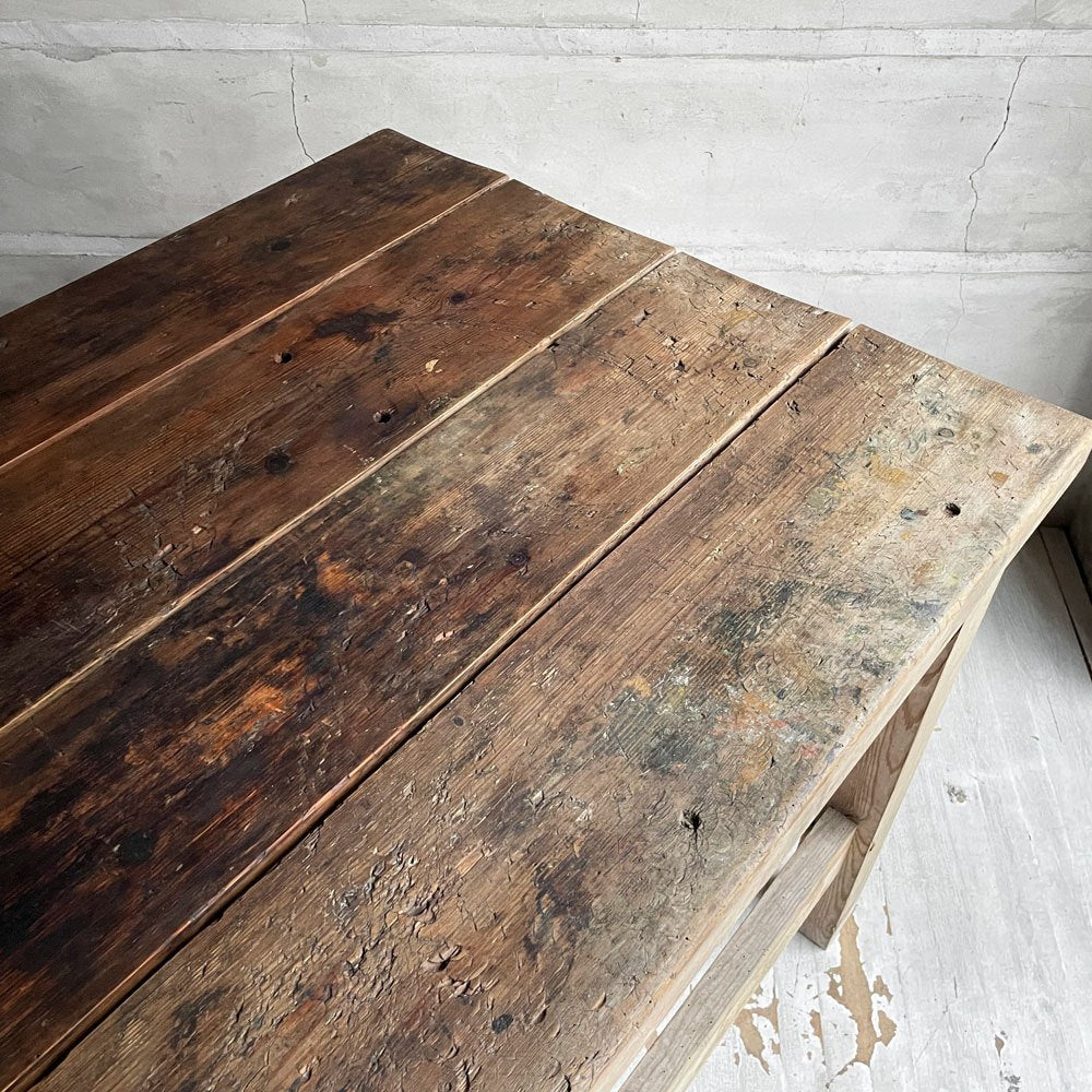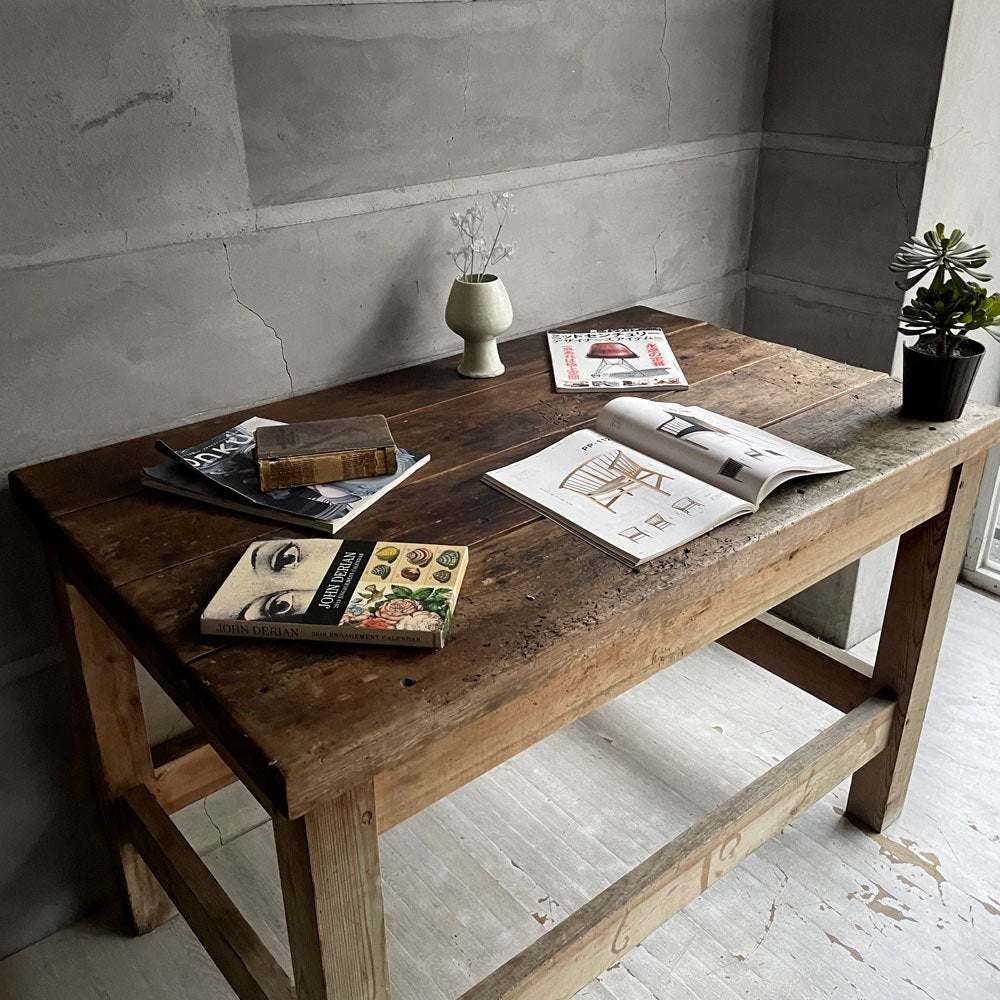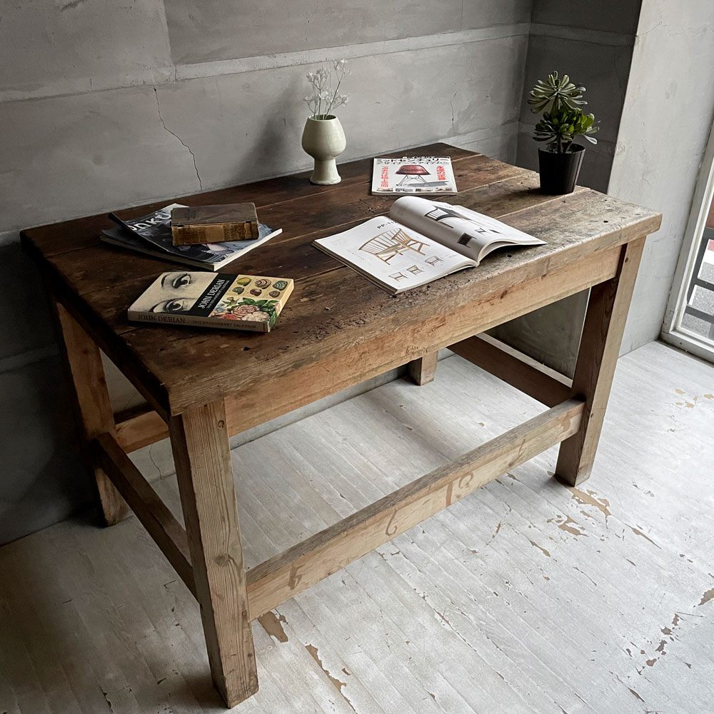 創作意欲を掻き立てられるUKビンテージのパイン古材ワーキングテーブルが入荷致しました。