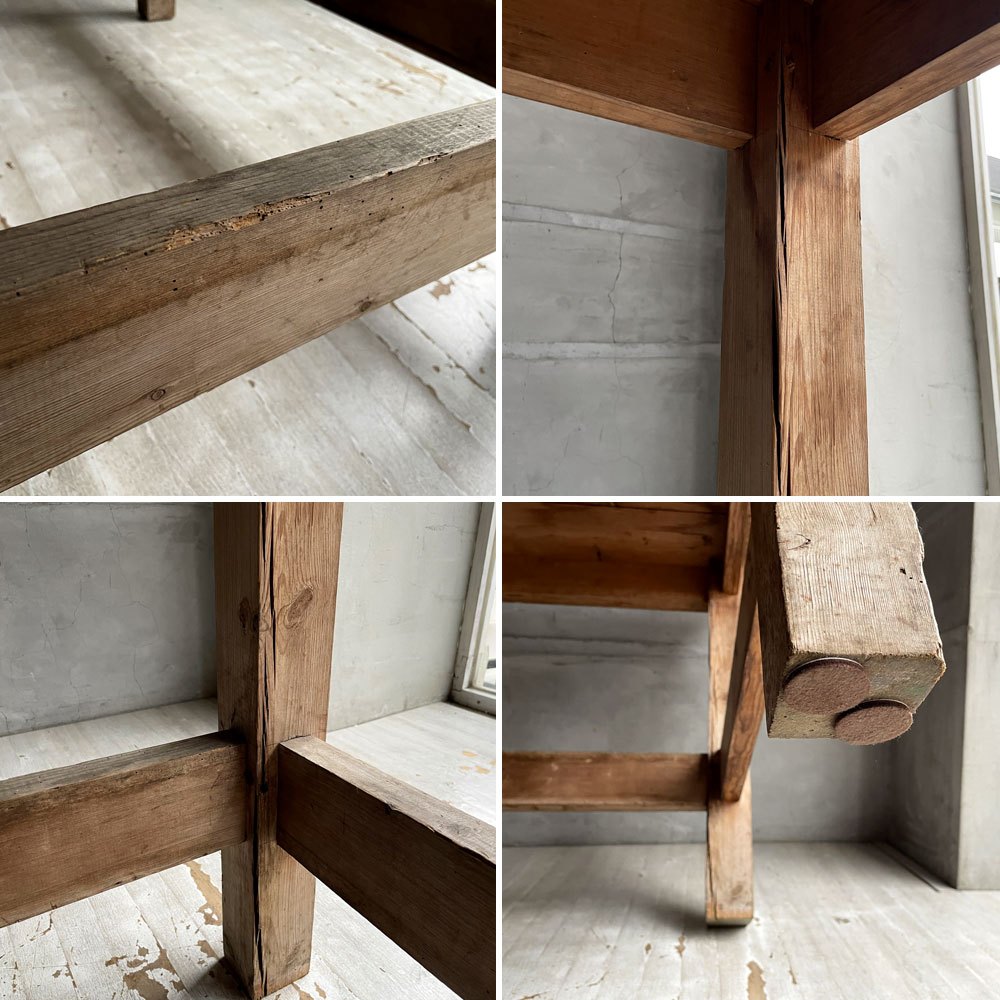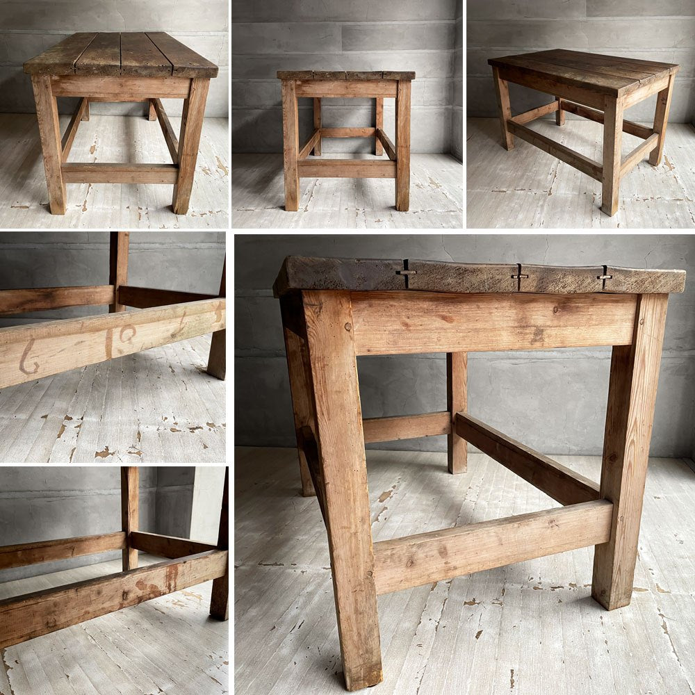 UKビンテージ 古材 パイン無垢材 ワーキングテーブル 作業台 ディスプレイ台 英国家具 古道具 シャビーシック 店舗什器 ♪