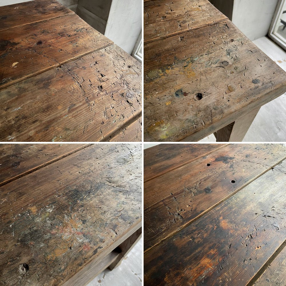 経年変化と作業台として使用されていた風合いが感じられ、使い込まれることで生まれた傷や汚れさえも魅力のひとつ。