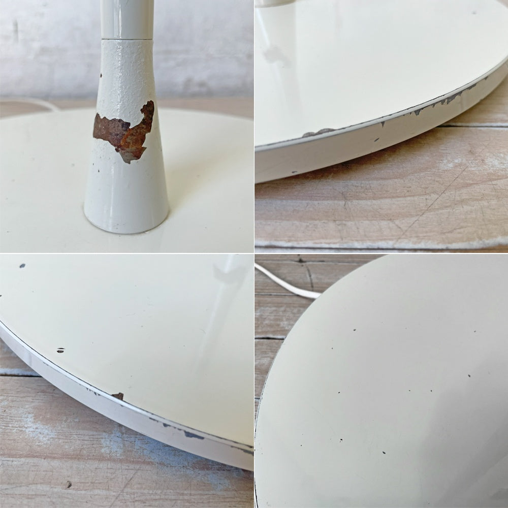 使用に伴い、シェード部分にごくわずかな擦れが見受けられます。また、ポールおよび土台部分には小さな傷や塗装の剥がれがございますが、いずれも目立つものではございません。なお、点灯動作に問題はなく、中古品として全体的に概ね良好なコンディションを保っております
