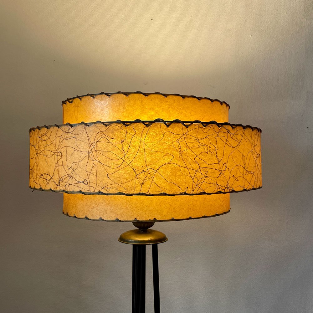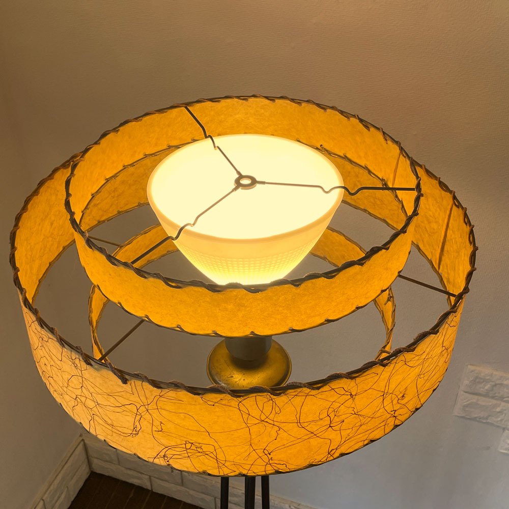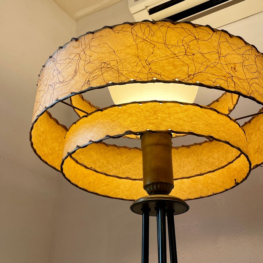 USビンテージ ファイバーシェード×ミルクガラスシェード フロアライト