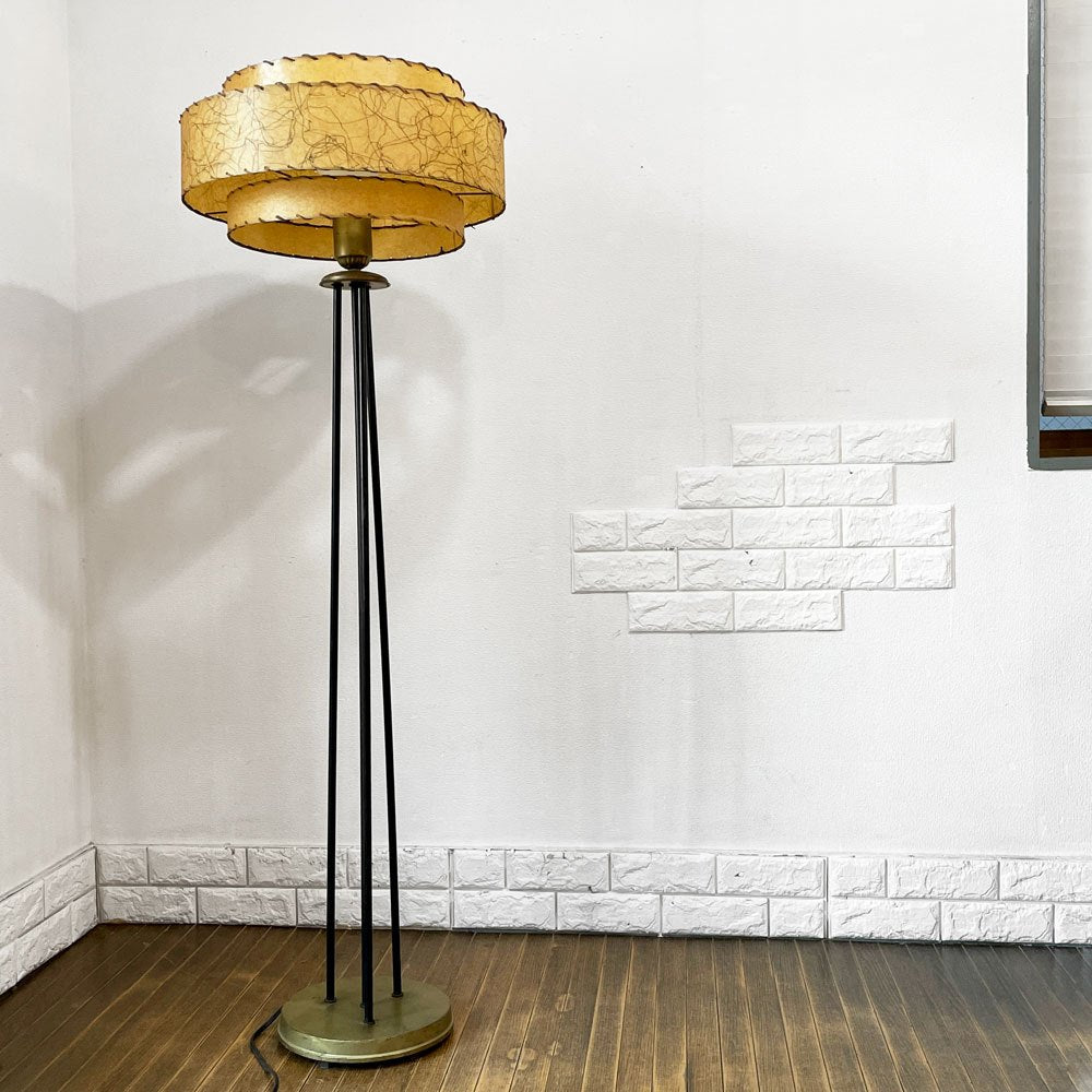 USビンテージ Vintage ファイバーシェード×ミルクガラスシェード フロアライト 真鍮&スチールベース H147cm アトミック ミッドセンチュリーデザイン ◎