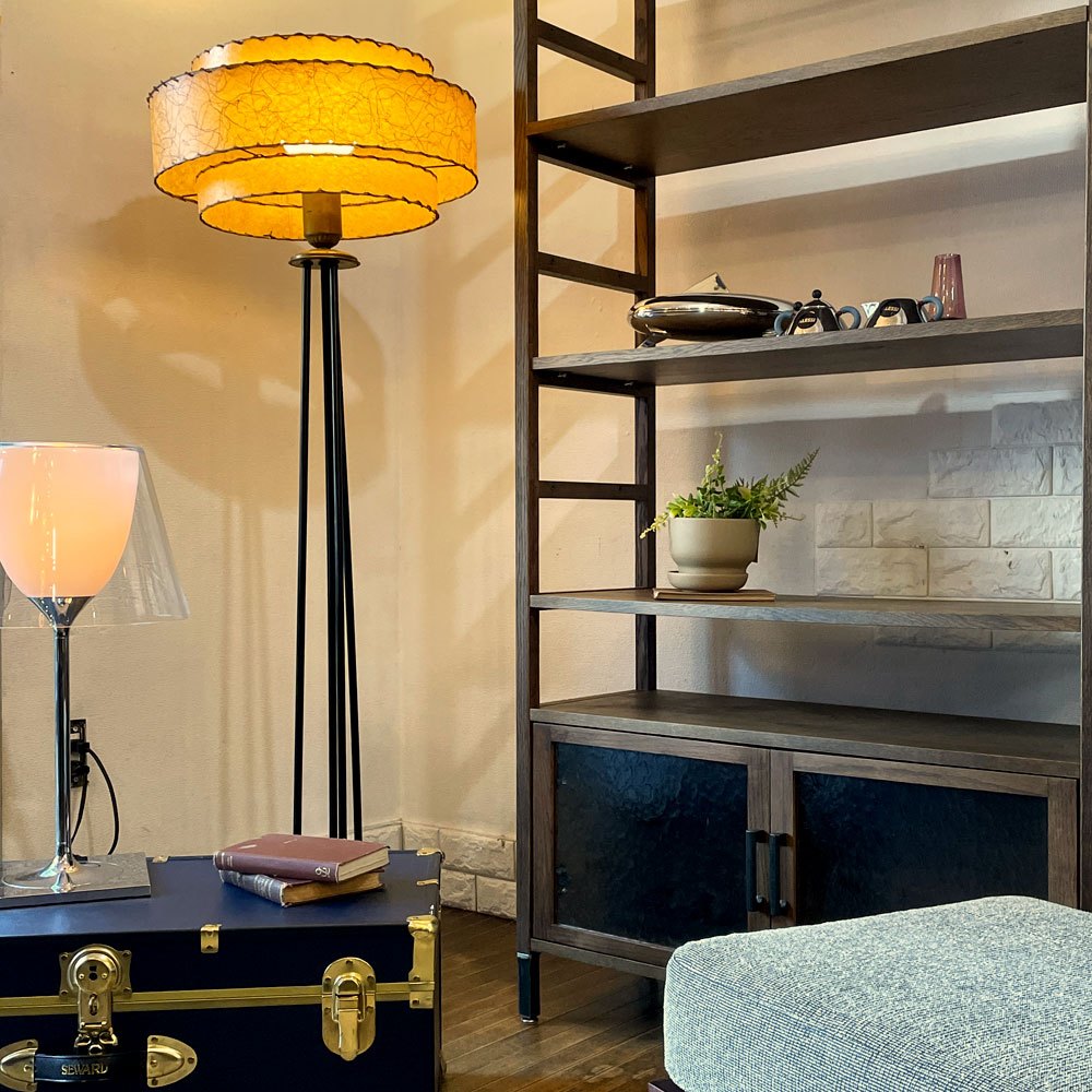経年の歪みや傷、汚れなども味わい深い魅力に感じられる1台。灯りをつけてもつけなくともリビングや寝室などさまざまな空間にムードある雰囲気をもたらしてくれます。