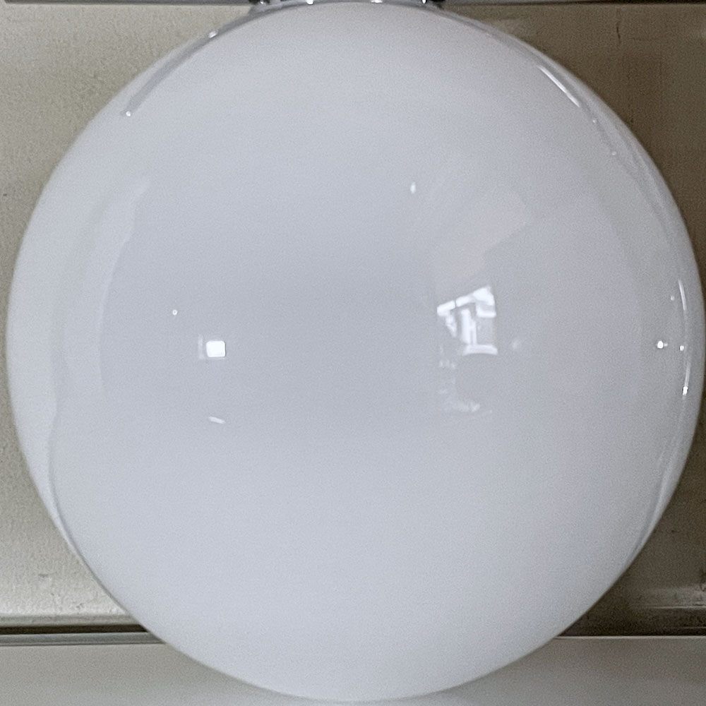 乳白色のガラス球が細い棒の上を転がるように配置され、空間に幻想的な雰囲気をもたらします。