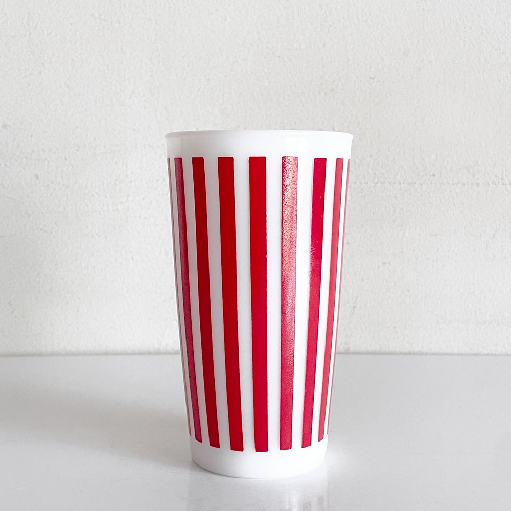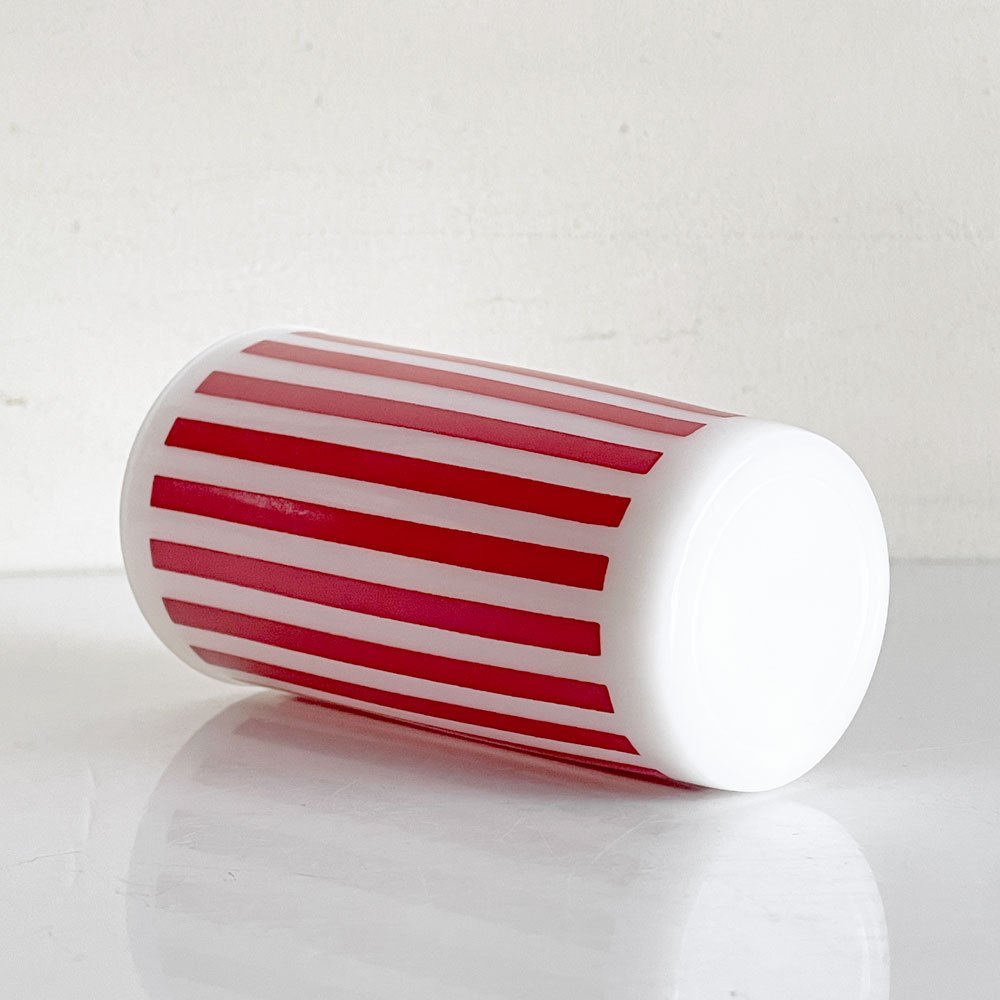 ヘーゼルアトラス Hazel Atlas キャンディストライプ Candy Stripe ガラスタンブラー レッド ミルクガラス 耐熱 50年代 USビンテージ ■