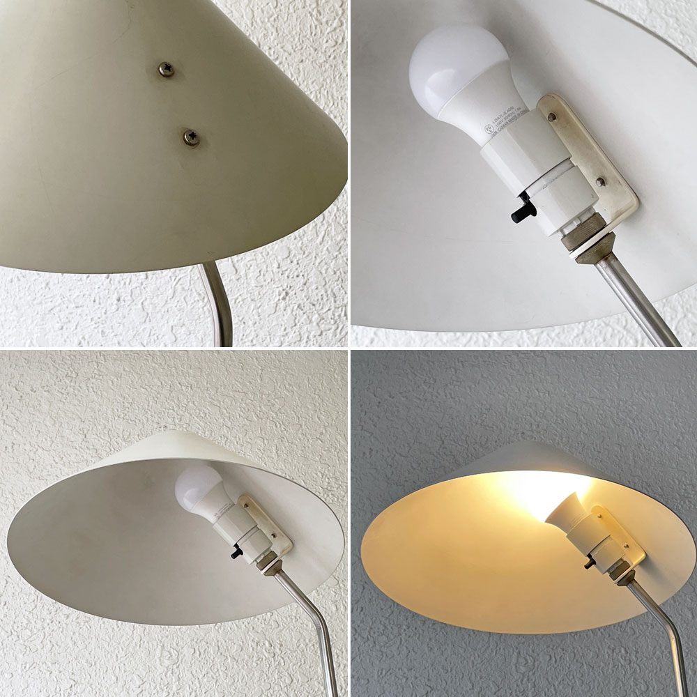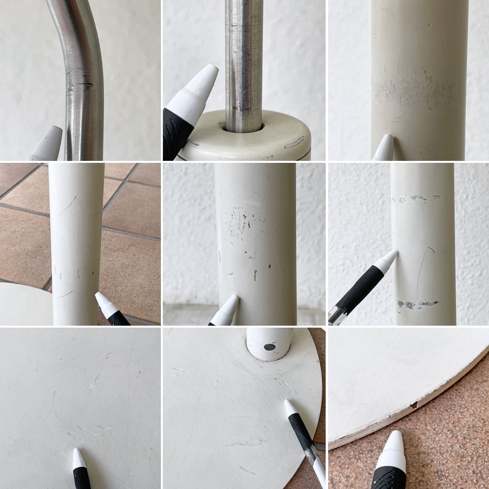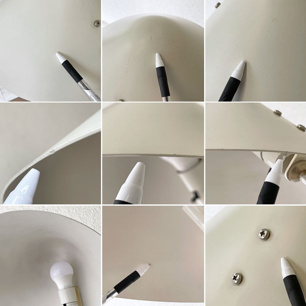 こちらはビンテージ品となります。使用に伴う擦れ傷の他、細かなスクラッチや打痕、線傷、塗装の剥がれ、うっすらとしたヤケ、シェードの接続部にわずかなアタリ、内側や電源コードに黒ずみ等、経年相応の使用感が見られるものの、いずれも風合いを大きく損なうものではございません。点灯やシェードの動作に問題は無く、引き続き雰囲気を楽しみながらお使い頂ける、ビンテージ品として概ね良好なコンディションを保っております。