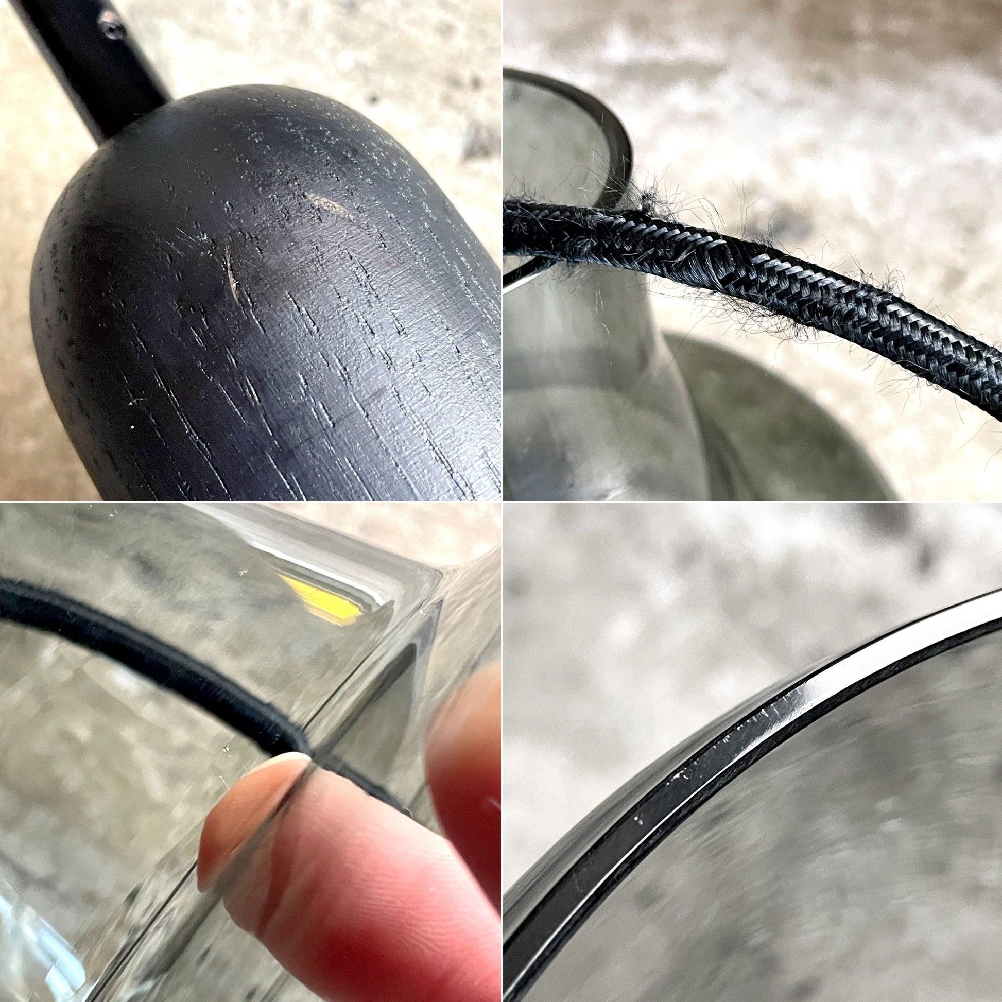 使用に伴い、木部には擦れや傷、ペイントロス、コードには毛羽立が僅かにございます。また、ガラスシェードに、くすみや傷、製造時からの気泡や揺らぎが見受けられます。その他目立つ様な大きなダメージは無く、これからも安心して実用頂けるコンディションを保っております。