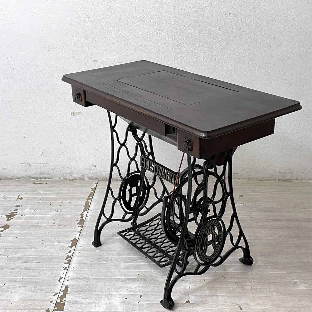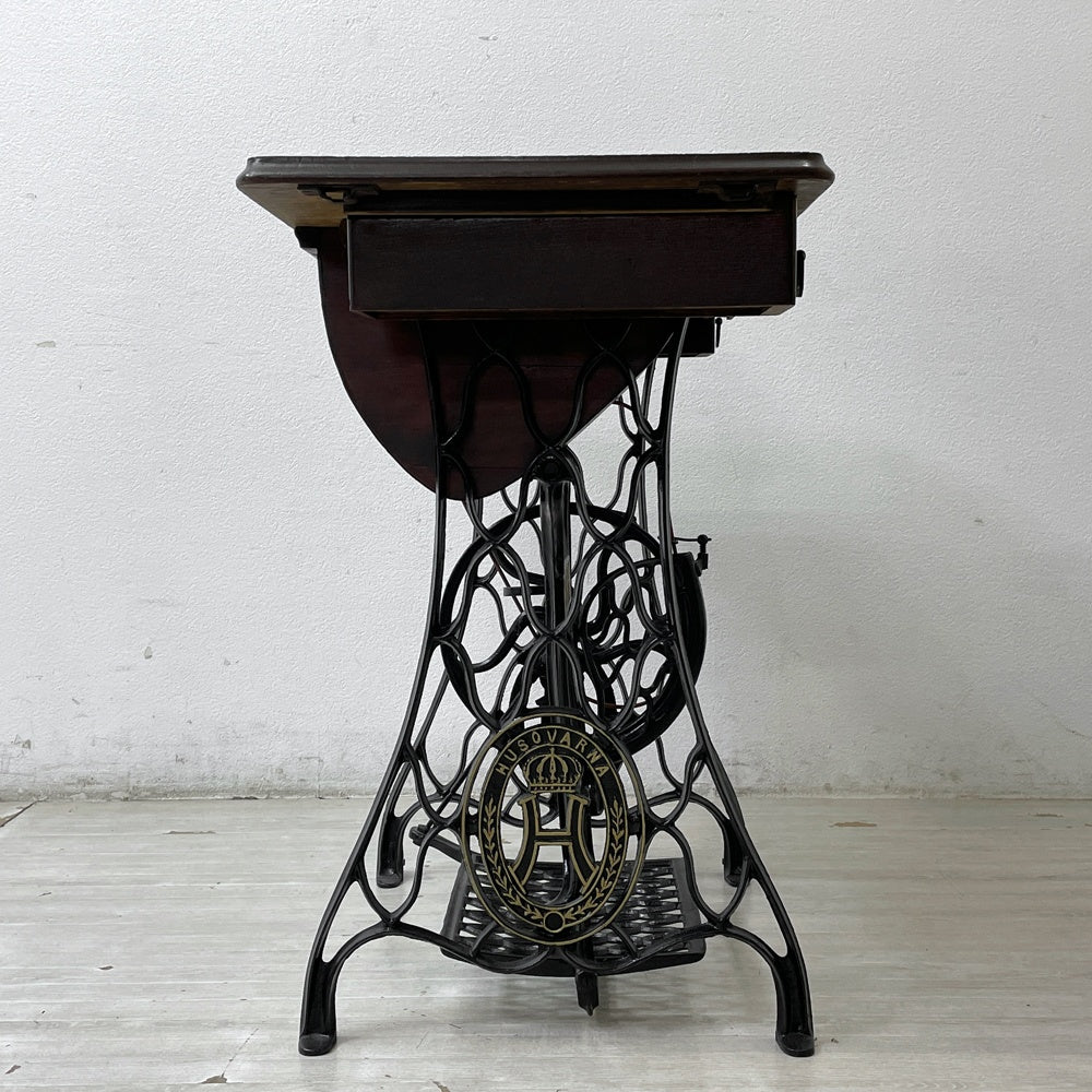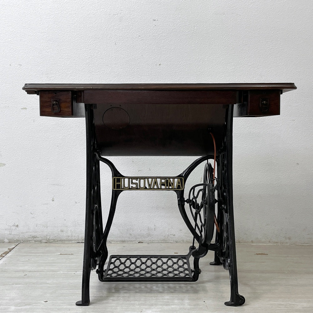 1689年に銃器製造からスタートし、現在では高品質のミシン等の家庭用品を手掛けるスウェーデンの老舗ブランド『HUSQVARNA/ハスクバーナ』。こちらは同社の『ビンテージ 足踏み刺繍ミシン』です。