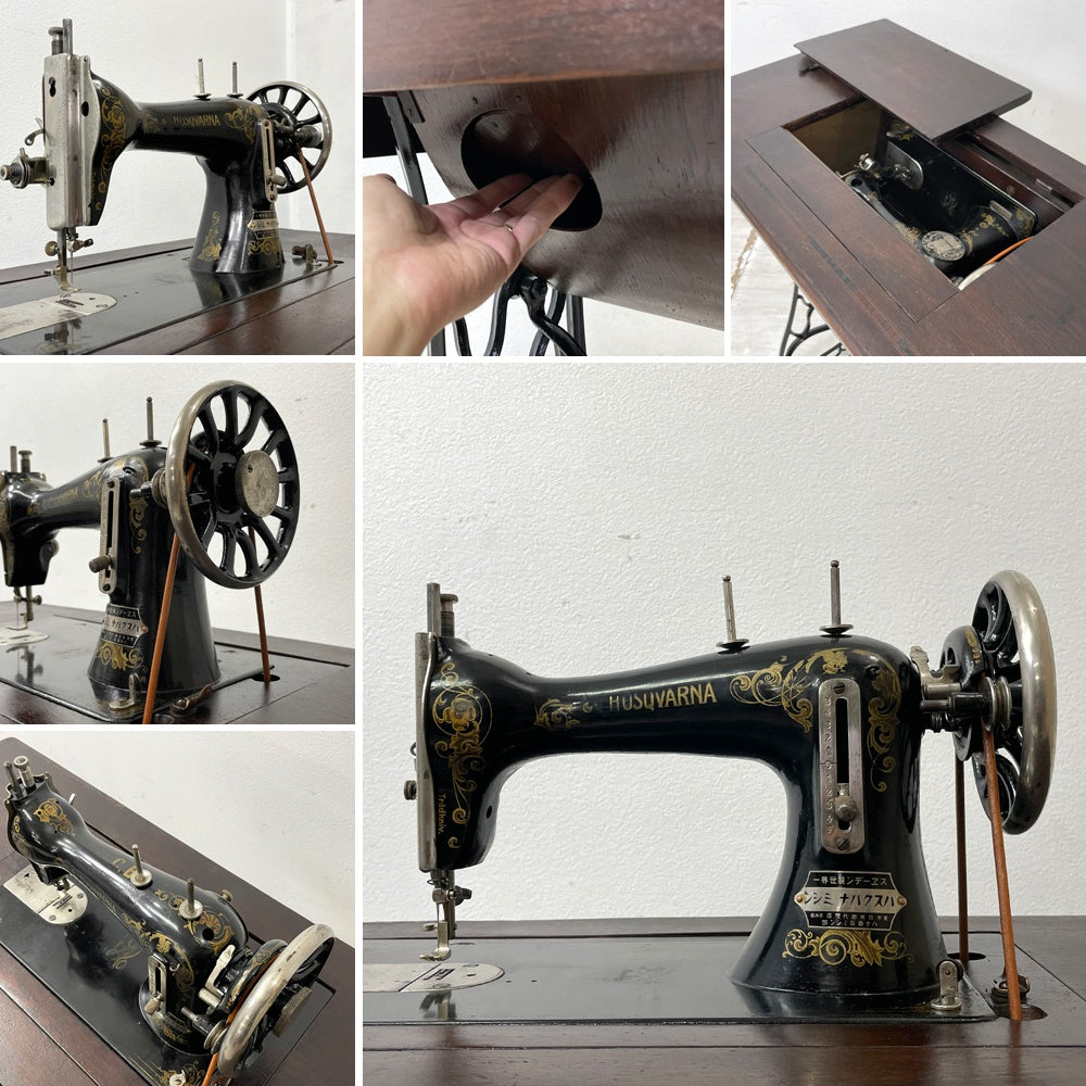 ハスクバーナ HUSQVARNA 足踏み 刺繍ミシン 網目 鋳物脚 鍵付き スウェーデンビンテージ ●