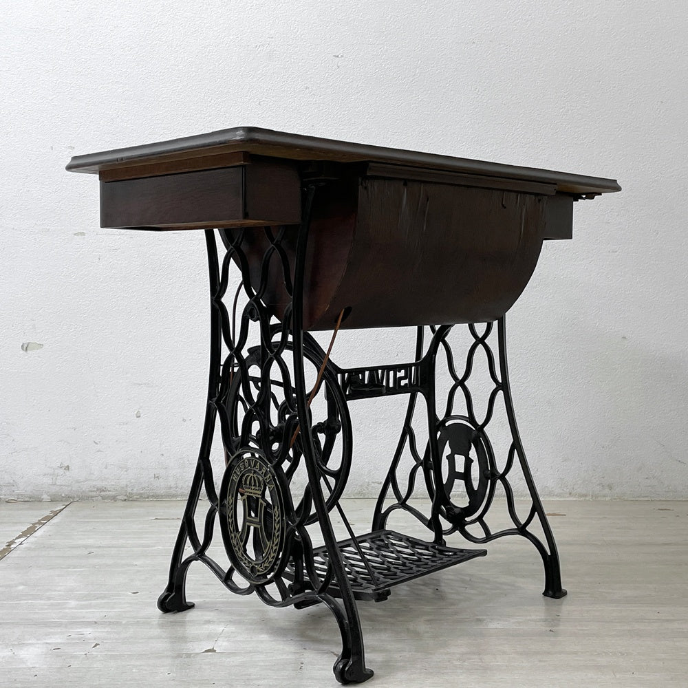 ビンテージミシンらしい鋳鉄の脚部は、美しい網目模様。大変インテリア性の高い逸品です。