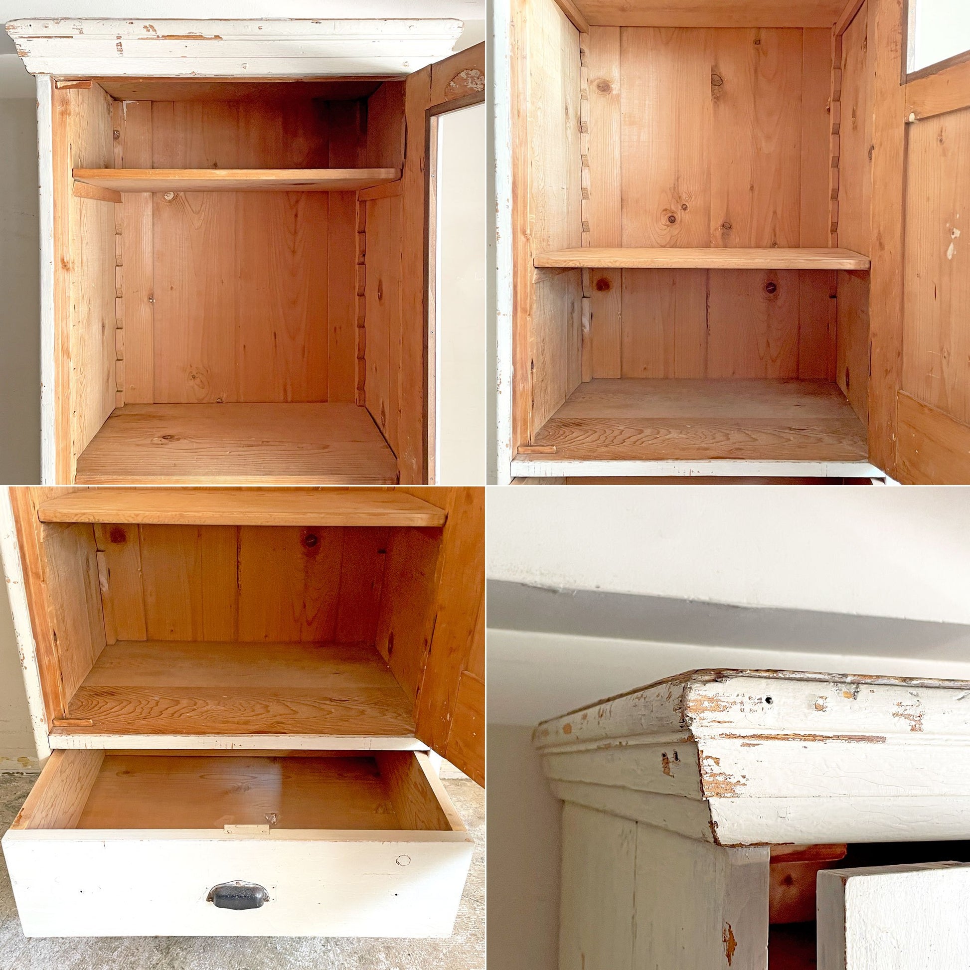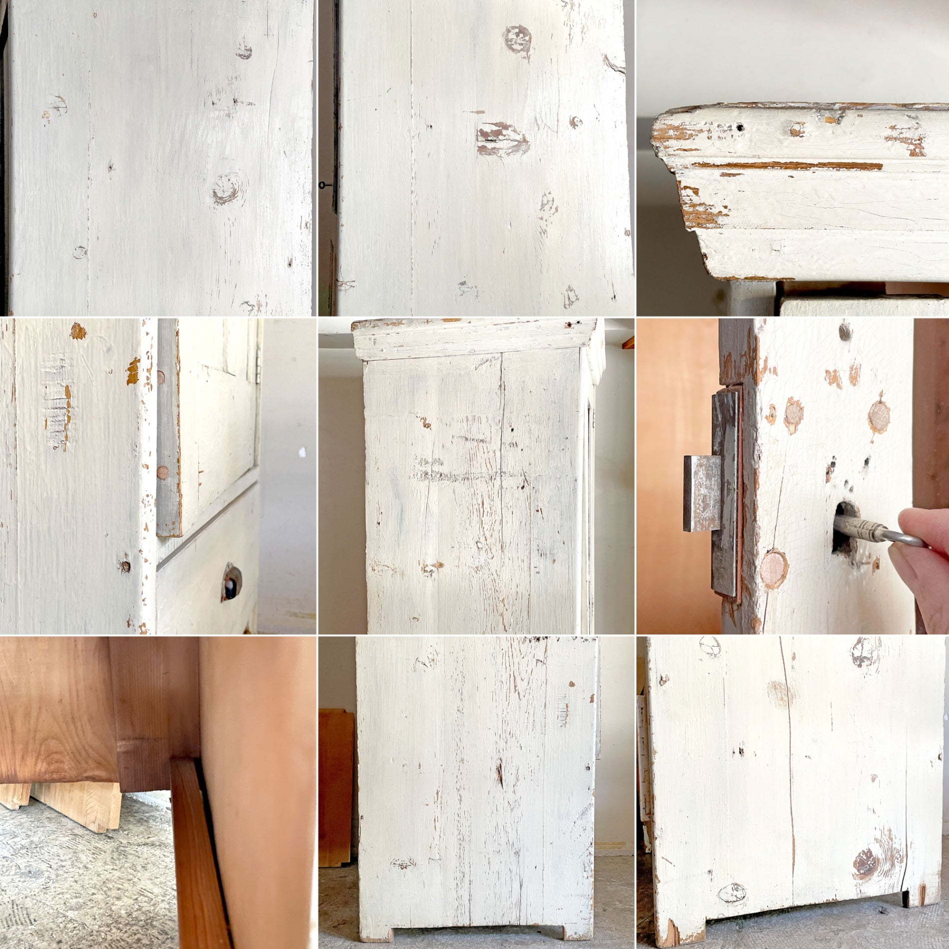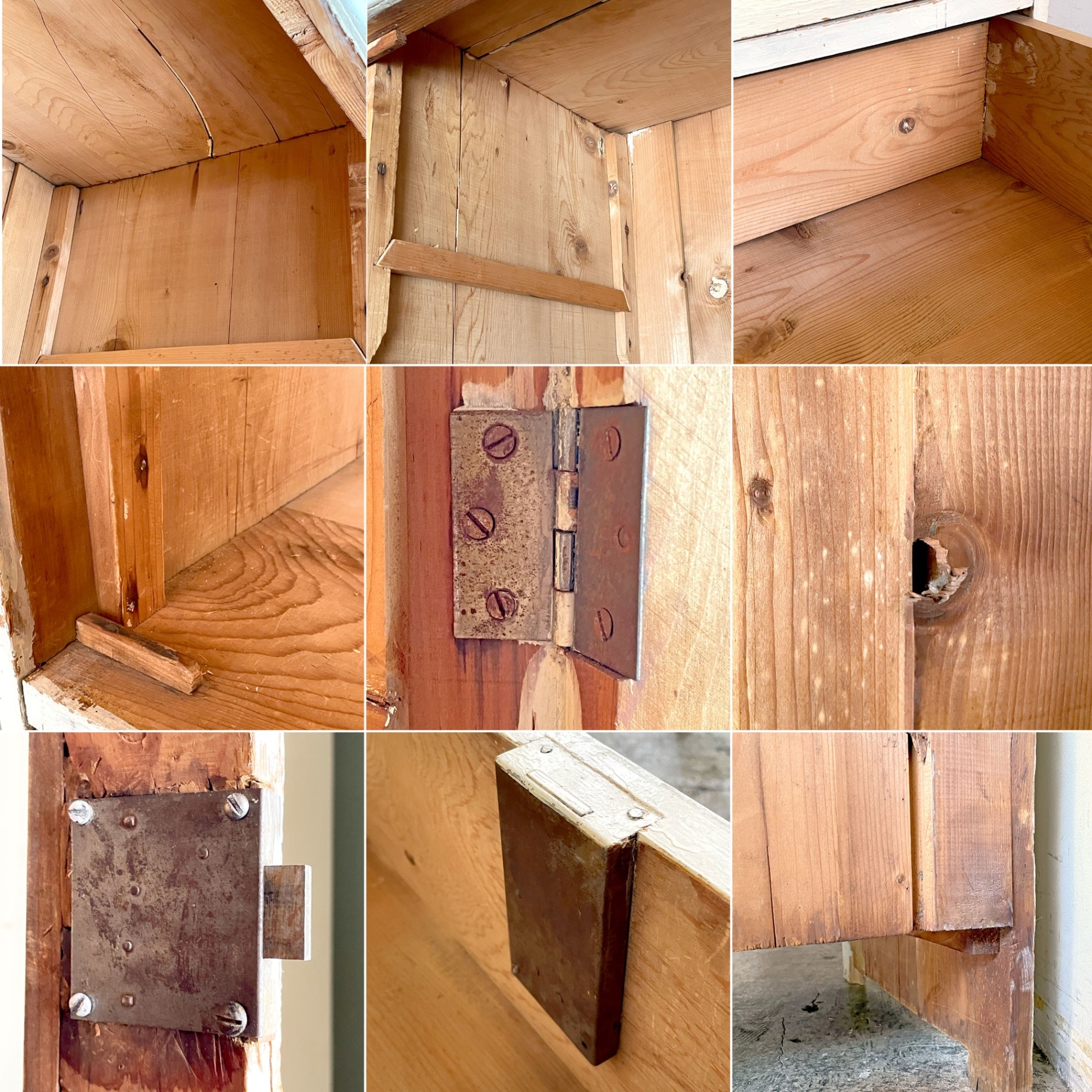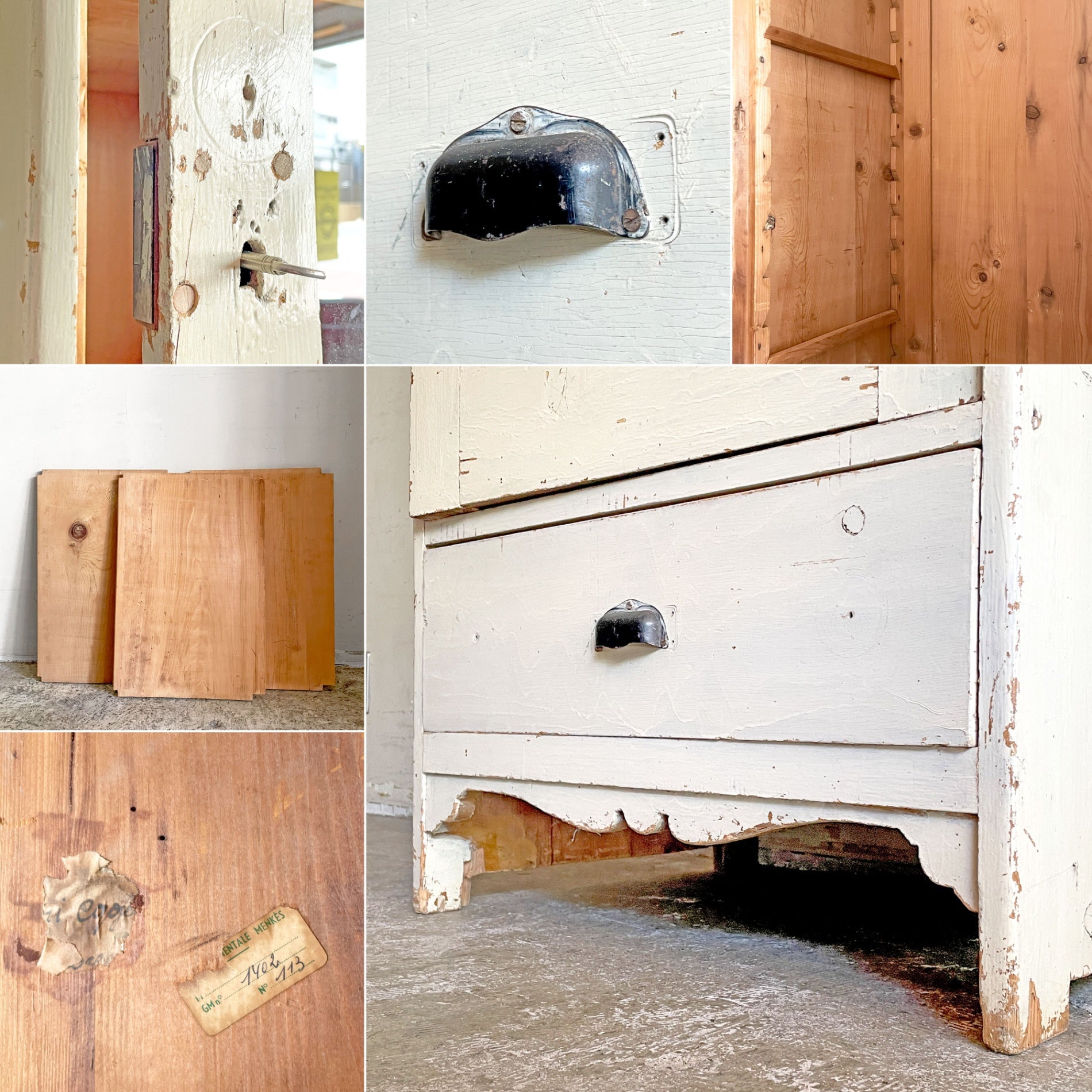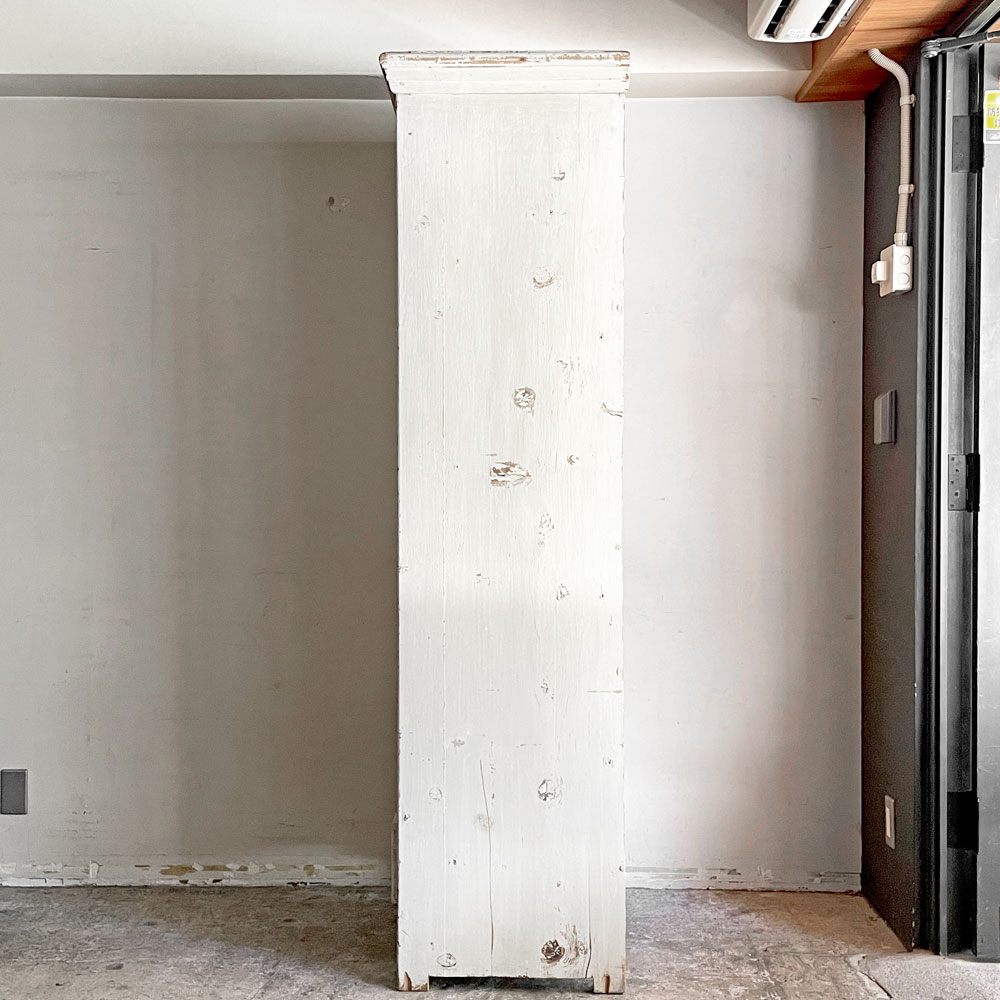こちらはビンテージのお品物です。使用と経年により、ペイント剥がれ、取り切れない汚れ、焼け、欠けや割れが散見されます。また、扉の取っ手が欠品しており、鍵を使用して開閉します。扉を閉めた際には、反りにより下部分が前に飛び出ます。その他の大きなダメージは無く、これからもビンテージの風合いをお楽しみ頂きながら実用いただけます。