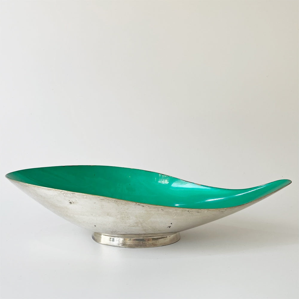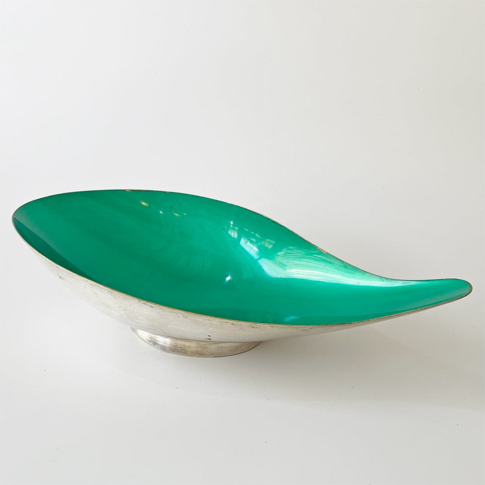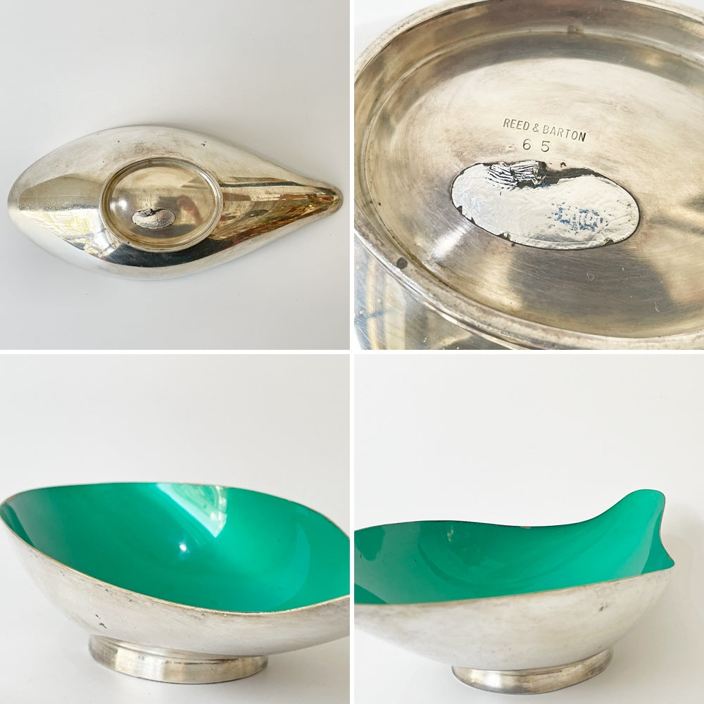リード&バートン Reed & Barton シルバープレート リーフボウル グリーン エナメル ミッドセンチュリー USビンテージ ★