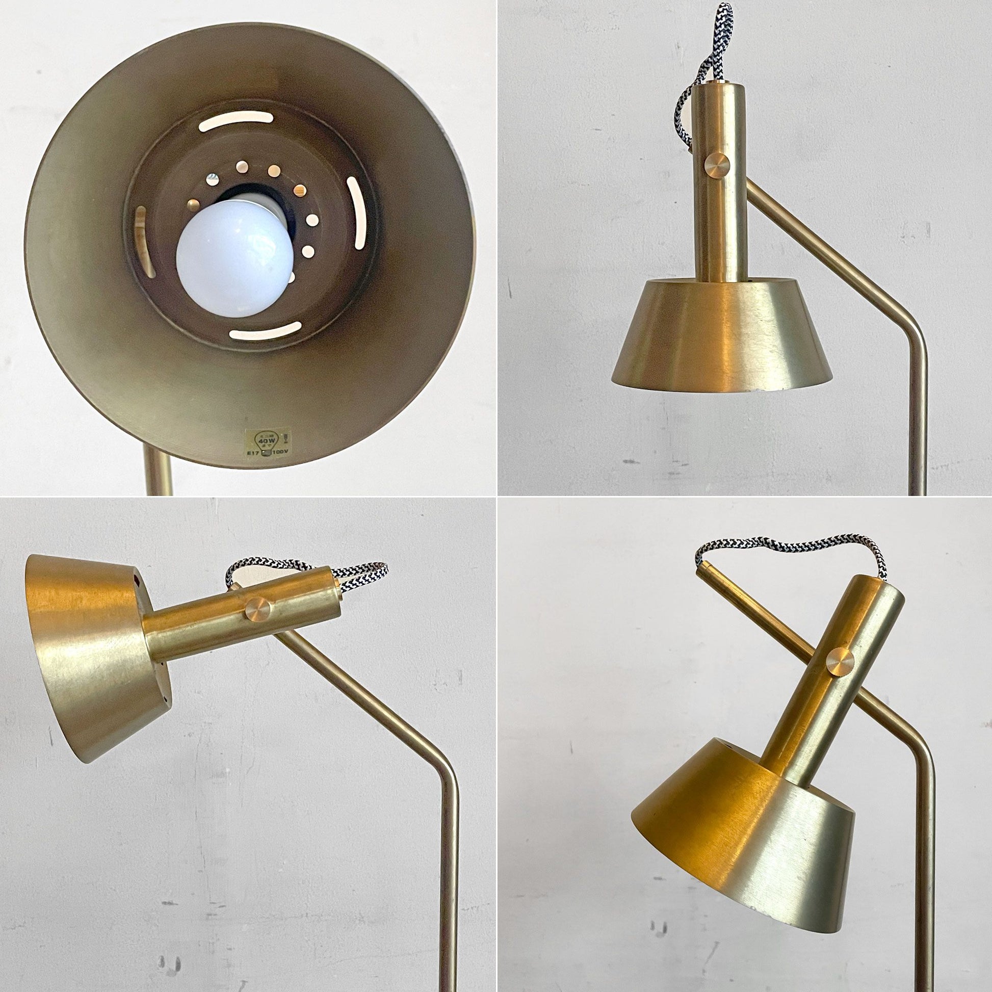 ポールとシェードがクロスする様や露出するコードまでもが美しく、デスク上で存在感を発揮するハイセンスな照明器具です。