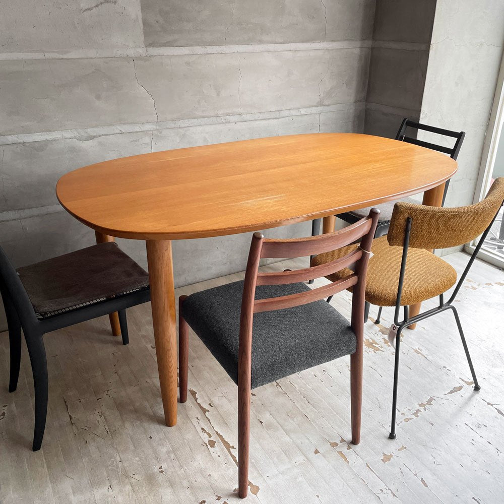 日進木工 Nissin ホワイトウッド WHITE WOOD ダイニングテーブル オーバル型 オーク無垢材 ウレタン塗装 廃番 ♪