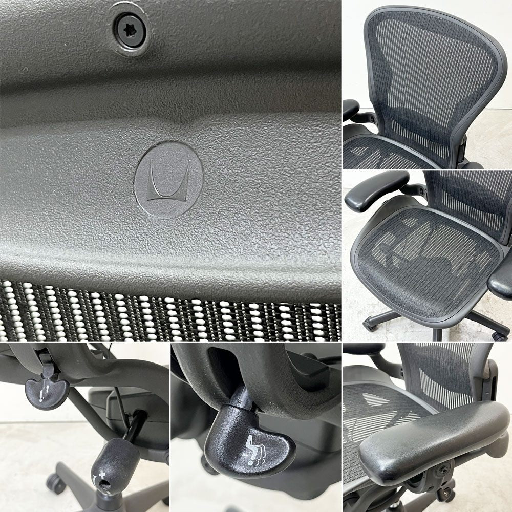 ハーマンミラー HermanMiller アーロンチェア ライト Bサイズ クラシックカーボンメッシュ ランバーサポート グラファイトベース アーム可動式 ●