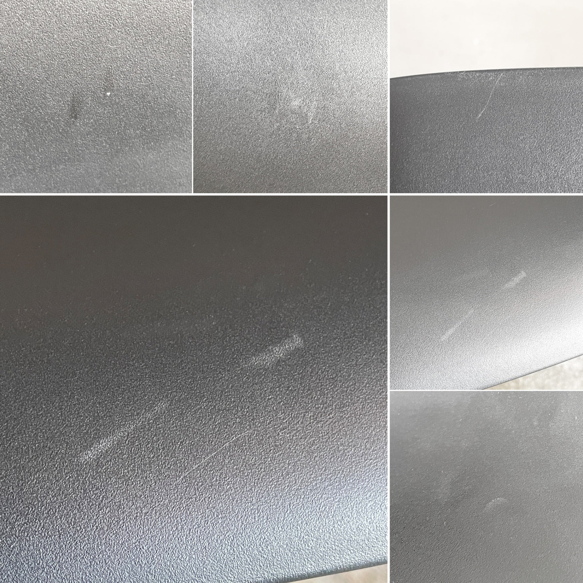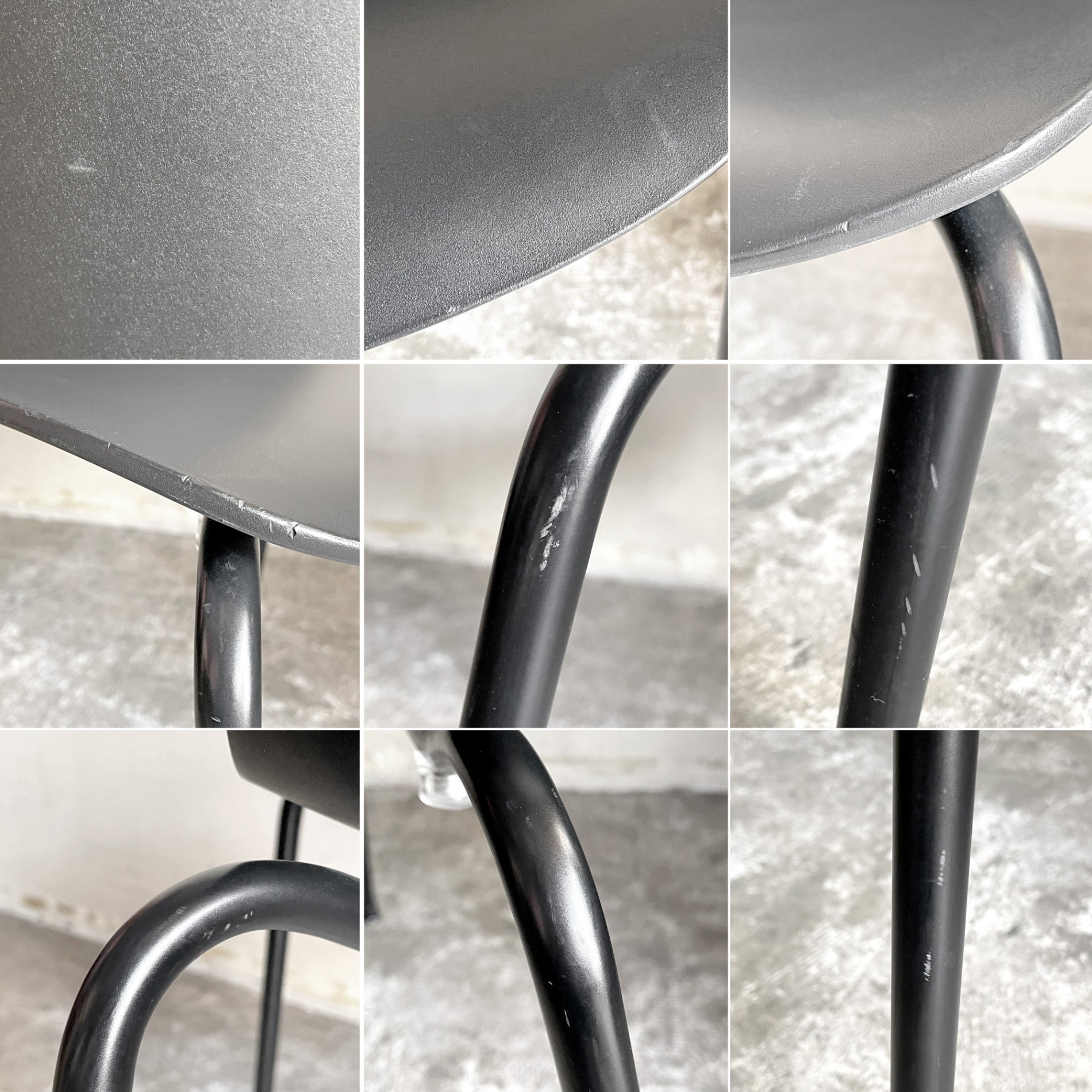 使用に伴い、細かな擦れや傷の他、シート部分には光の加減によって見える線傷や擦れ痕、脚部にはペイントロスが見受けられます。