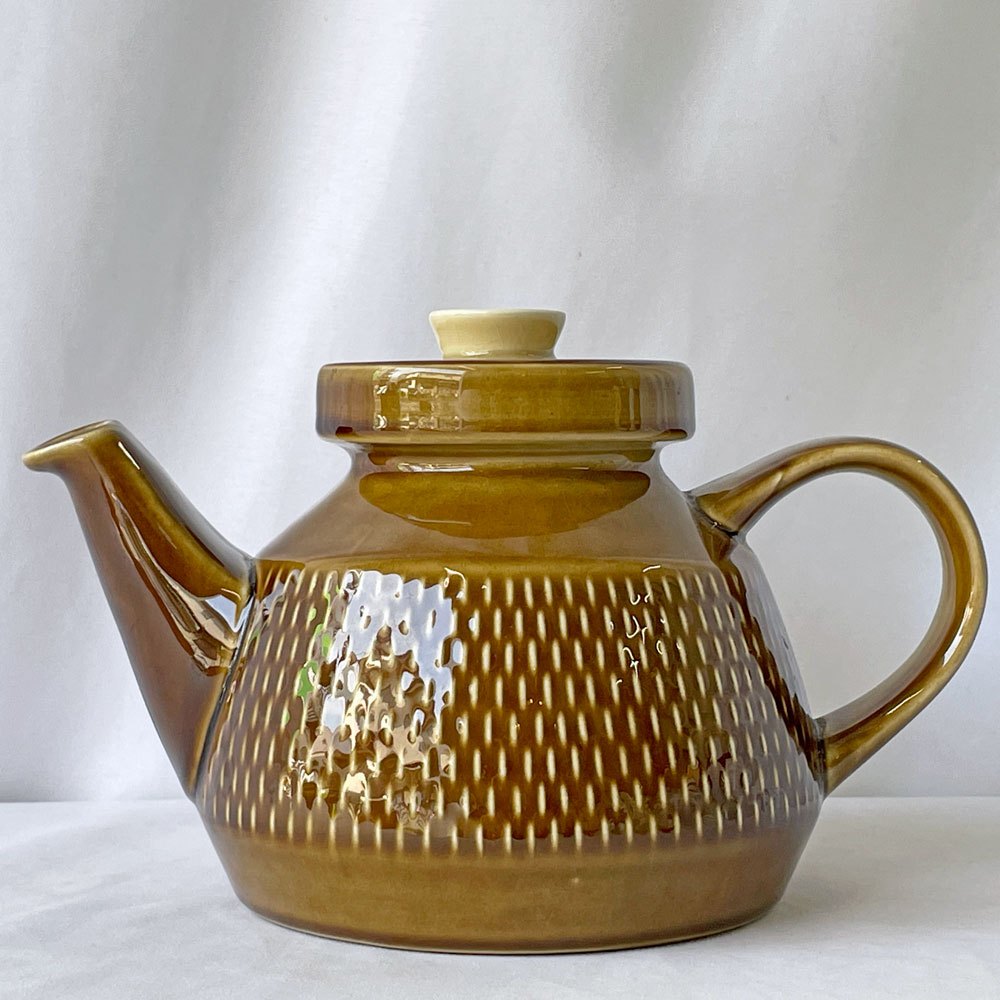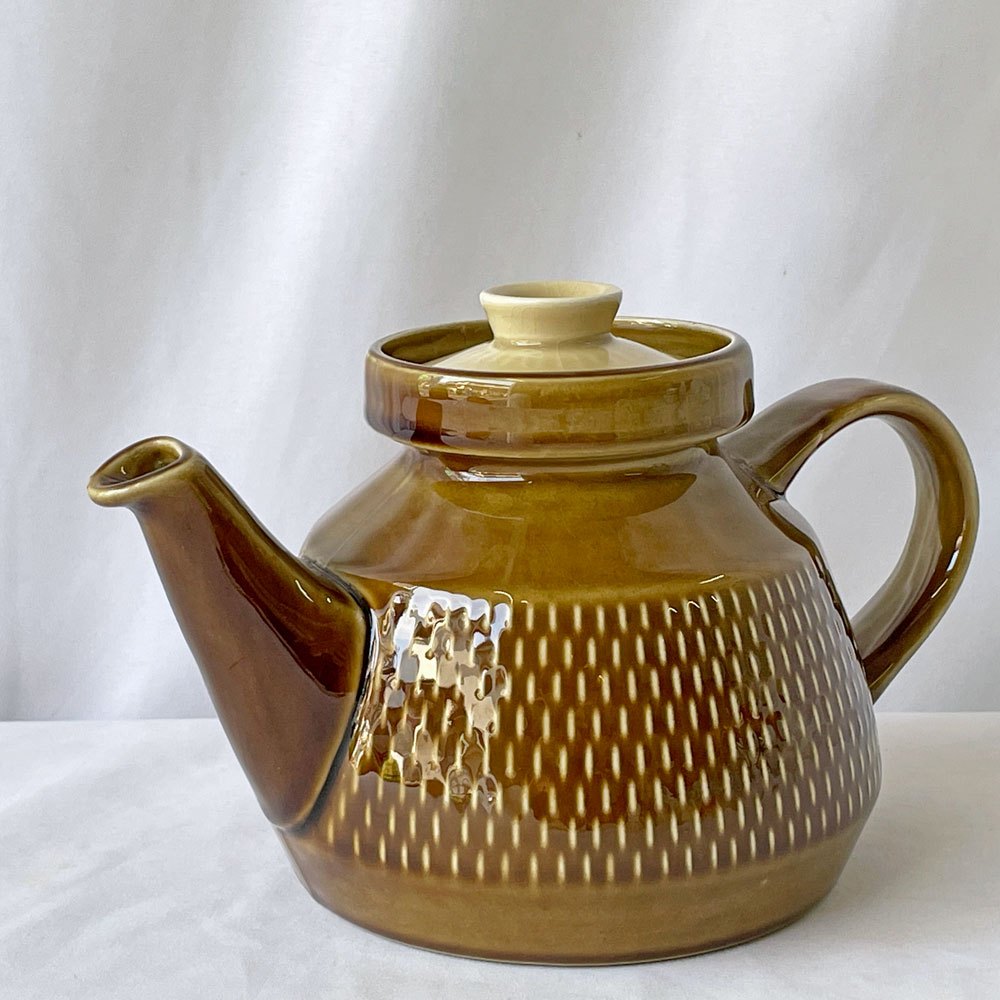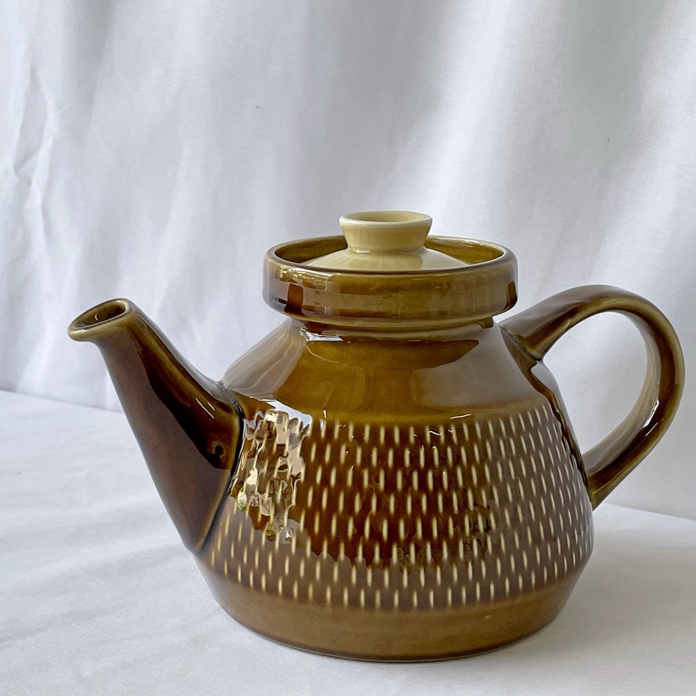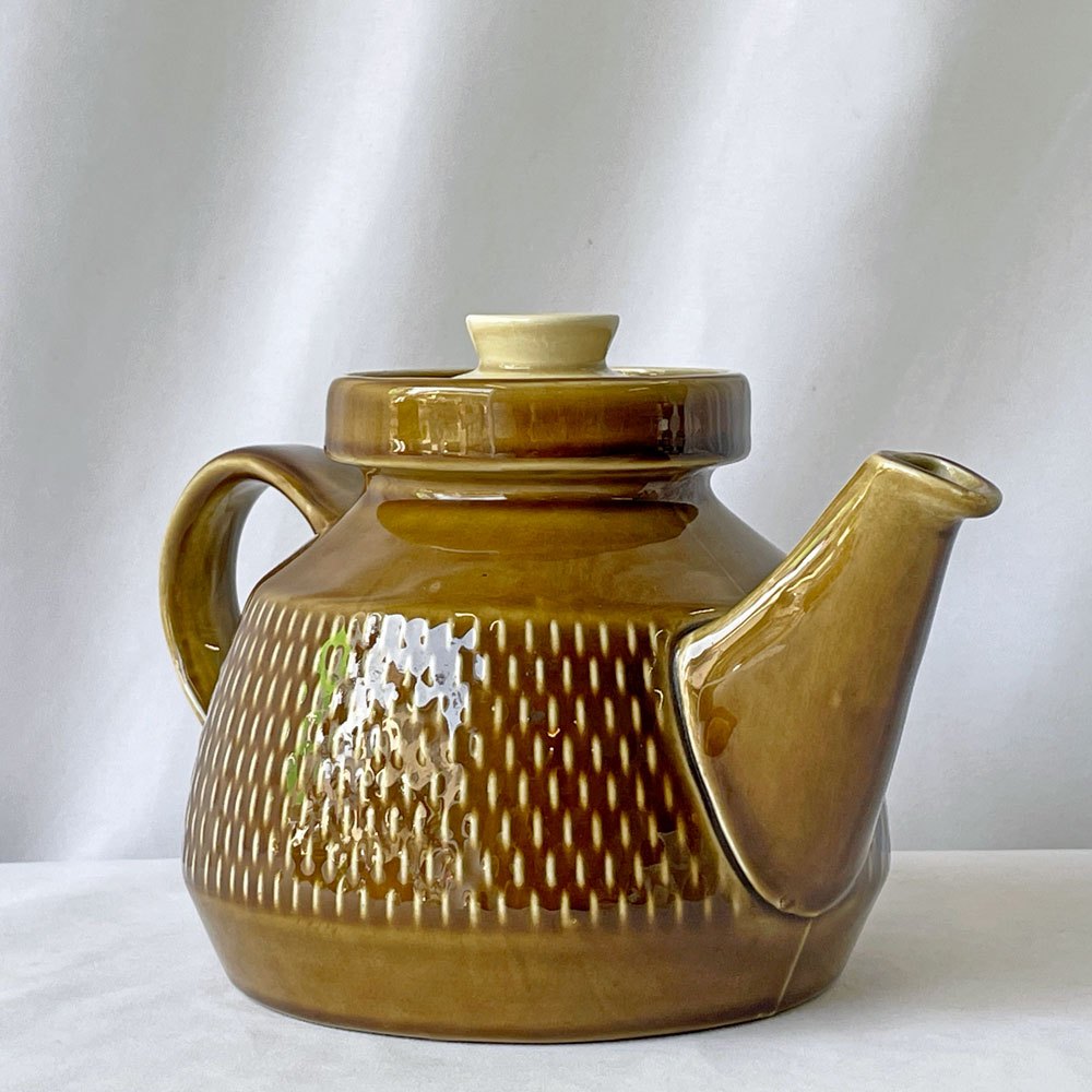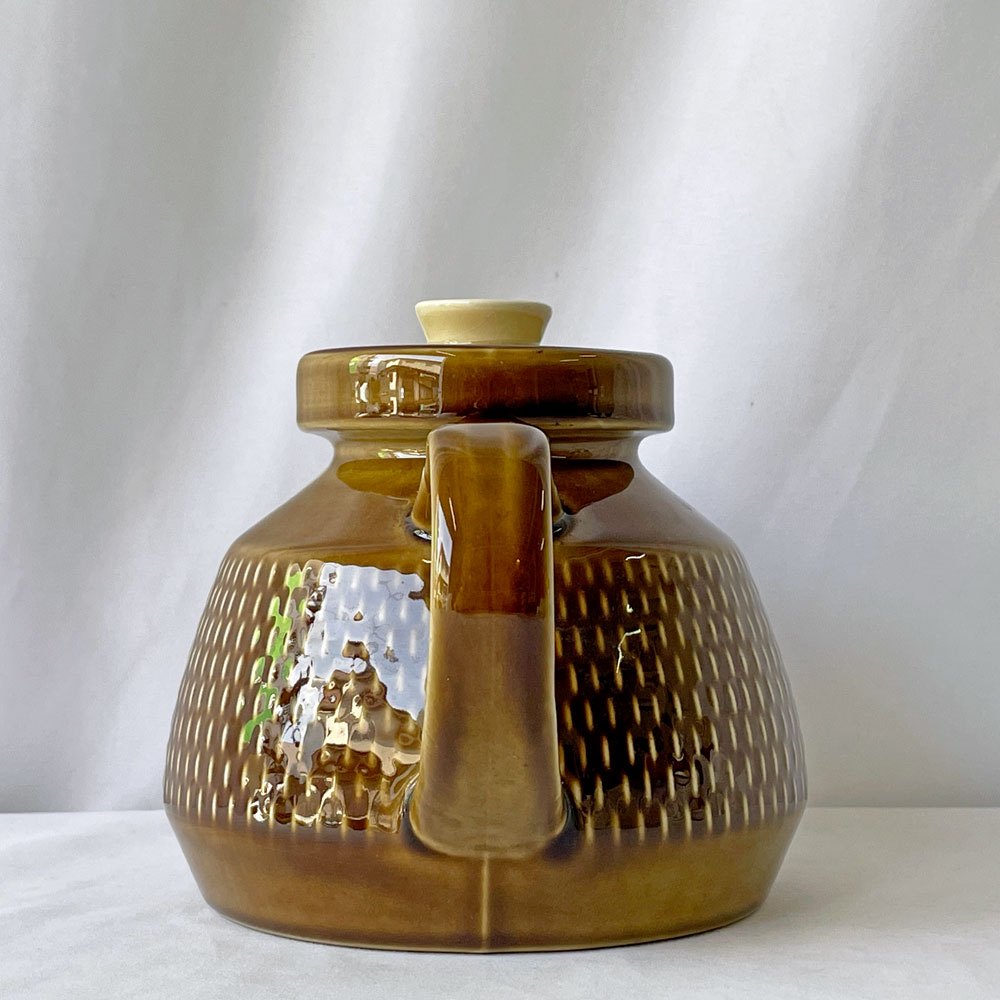落ち着いた色味ながらも存在感があり、日常の食卓にさりげない彩りを添えてくれるポットです。